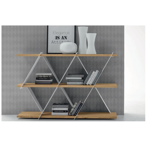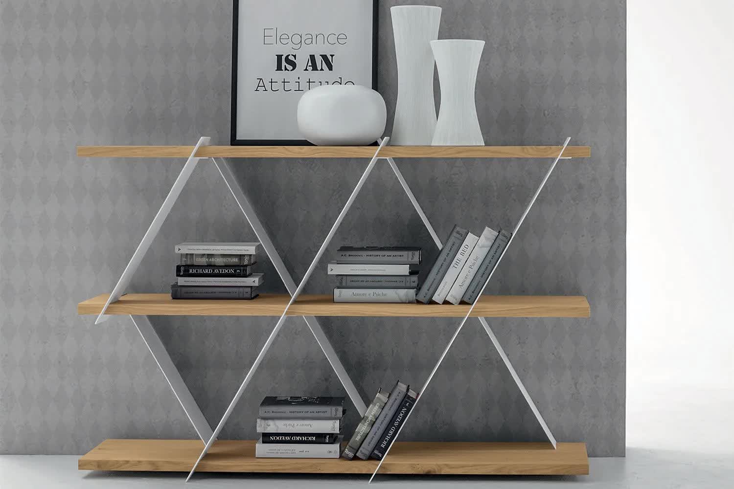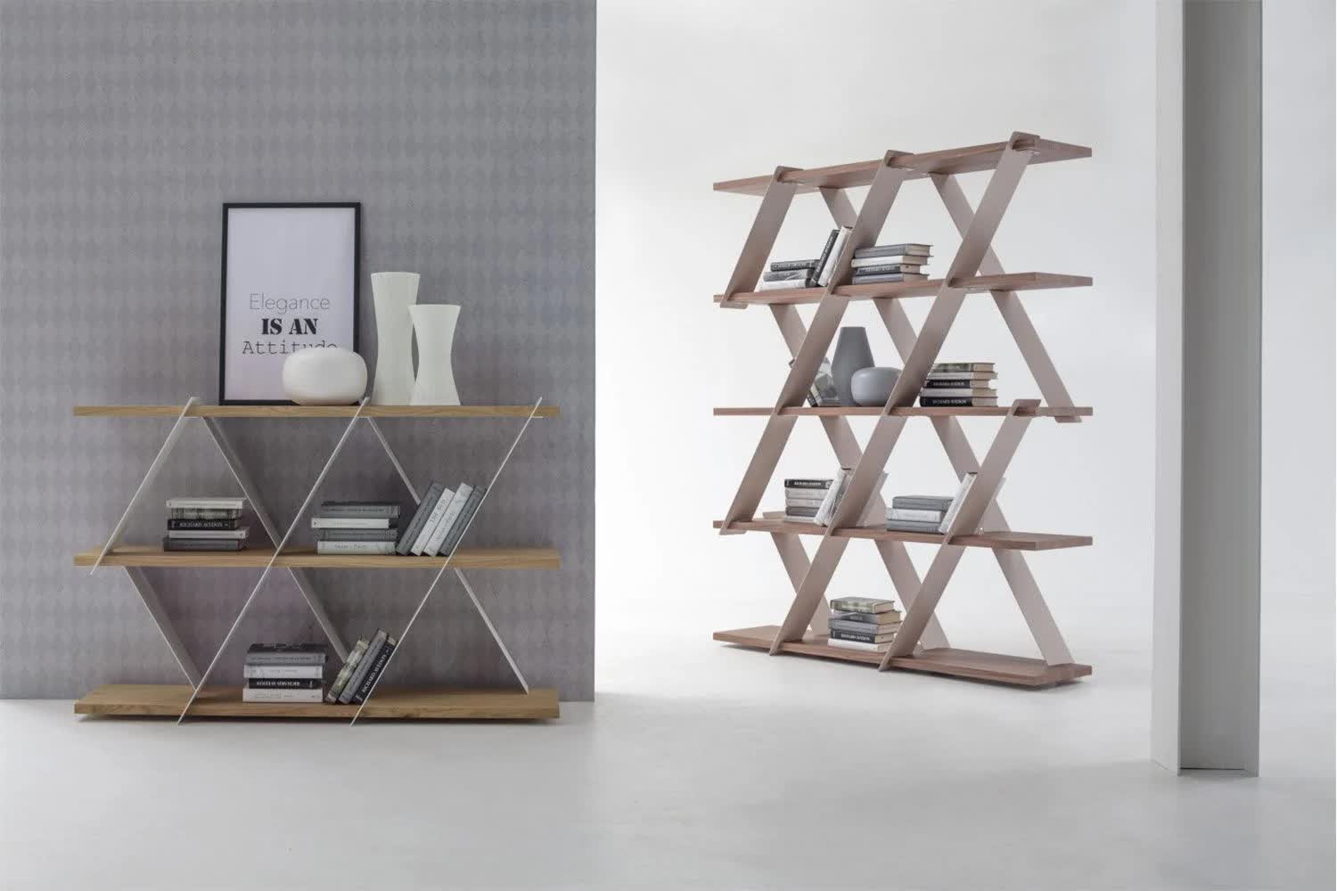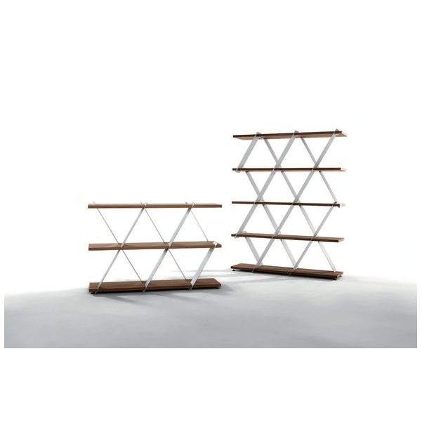 Wyjątkowy i stylowy regał Castle marki Tonin Casa to piękny sposób na wyeksponowanie biblioteki i elementów współczesnego wystroju. Przypominający domek z kart ten regał w zabawny sposób wykorzystuje geometrię w salonie. Ponieważ utalentowani włoscy rzemieślnicy używają tylko najlepszych materiałów, półki są solidne i trwałe, aby z łatwością pomieścić przedmioty. Wyprodukowany we Włoszech, aby zapewnić jakość, regał Castle jest nowoczesnym arcydziełem. Jest dostępny w wersji krótkiej i wysokiej, a półki są dostępne w różnych wykończeniach drewna. Wybierz między różnymi matowymi kolorami ramy.