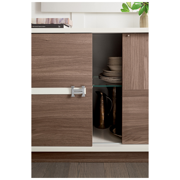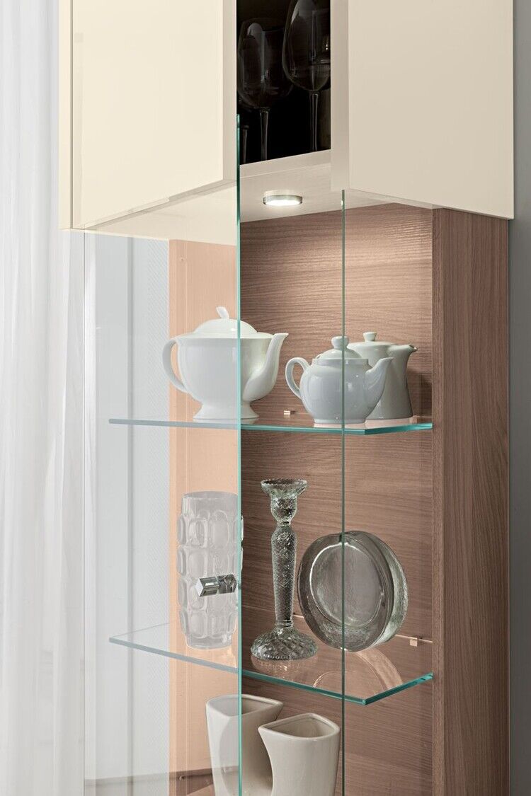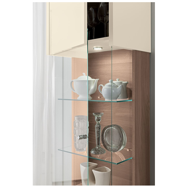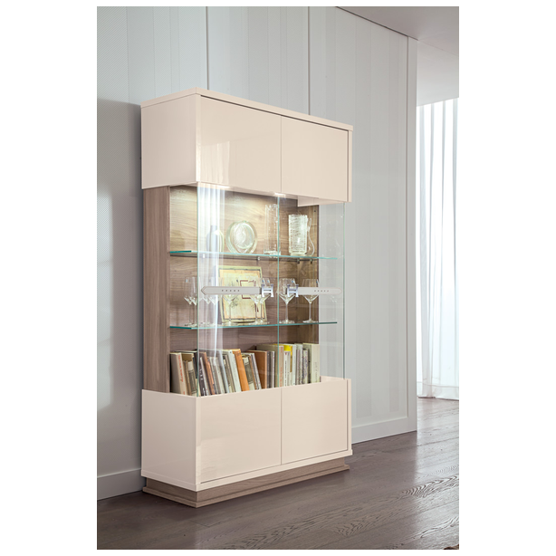 Inne elementy z kolekcji Evolution to 2-drzwiowy i 4-drzwiowy kredens z dopasowanym lustrem oferującym dużo miejsca do przechowywania oraz wybór 1-drzwiowych i 2-drzwiowych witryn z wewnętrznym oświetleniem LED. Szafka RTV jest również dostępna, jeśli chcesz poszerzyć kolekcję o salon. Kredensy, gabloty i szafki RTV również oferują wybór uchwytów. Pokazana na zdjęciach piękna rączka z logo na skórzanym pasku zmienia modele Evolution w bardzo nowoczesną współczesną kolekcję.