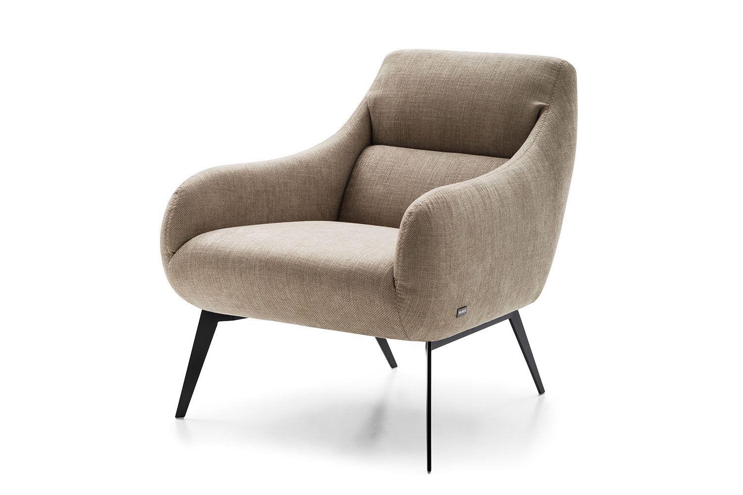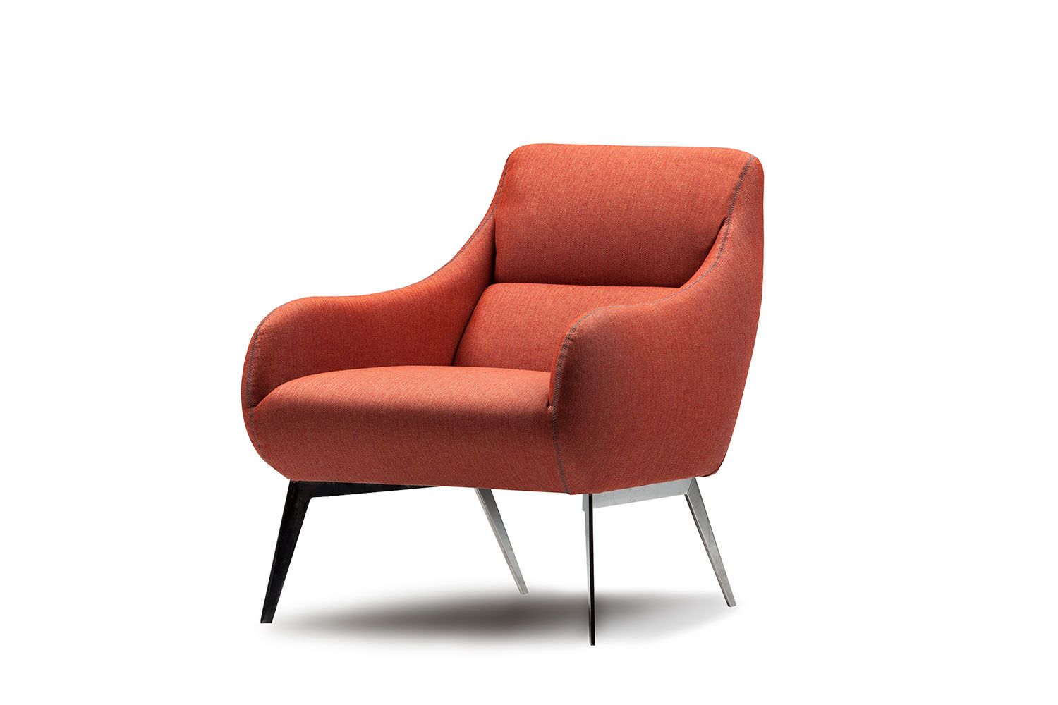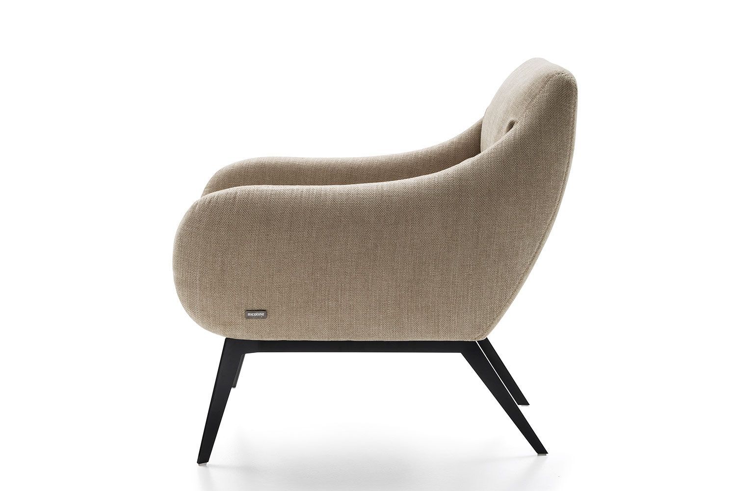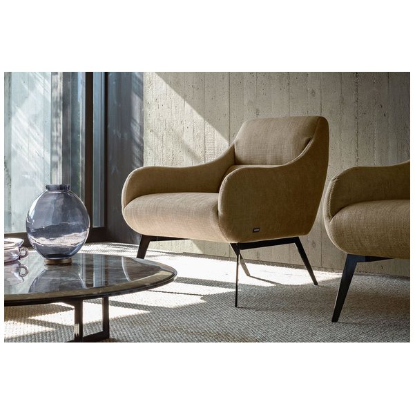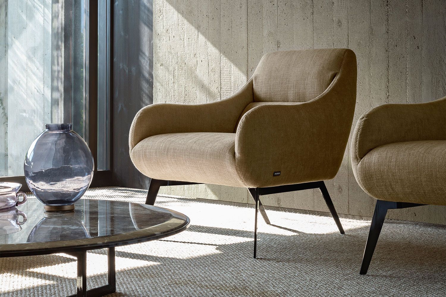 Fotel Dia firmy Nicoline Italia to wspaniały mebel, który robi imponujące wrażenie w nowoczesnym salonie. Przyciągające wzrok są pochylone podłokietniki i misterne szwy w paski. Dzięki skośnym nogom i lekko zakrzywionemu tyłowi zapewnia ergonomiczne wsparcie sprzyjające prawidłowej postawie, a tapicerka zapewnia wygodę przez wiele godzin. Dzięki eleganckiej sylwetce dobrze komponuje się z resztą współczesnych mebli. Opcje tapicerki obejmują szereg tkanin i skór, nogi są wykończone w różnych metalowych opcjach. Szwy są w dopasowanych, jaśniejszych lub ciemniejszych kolorach.