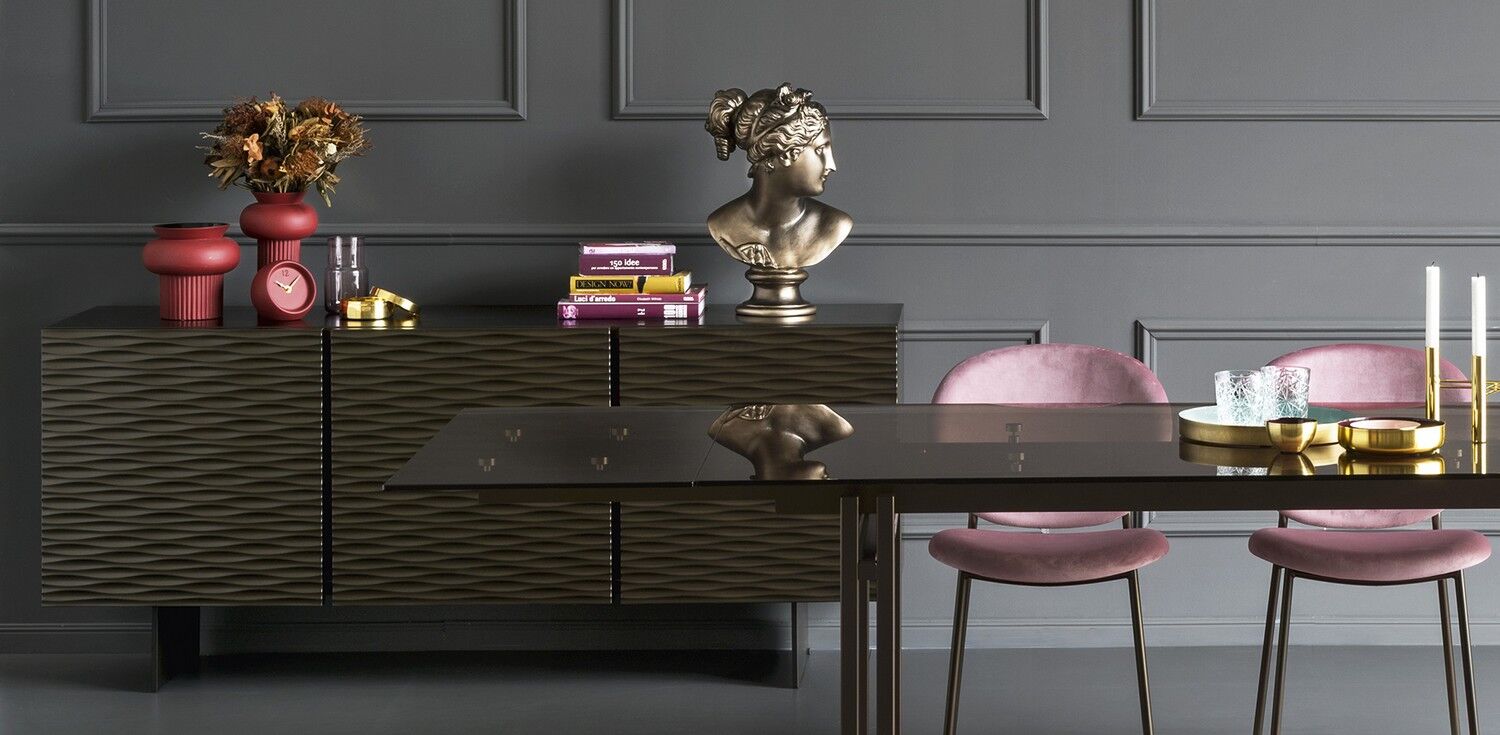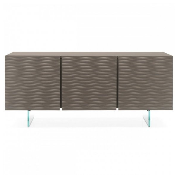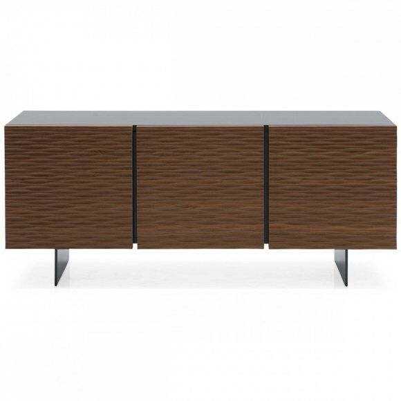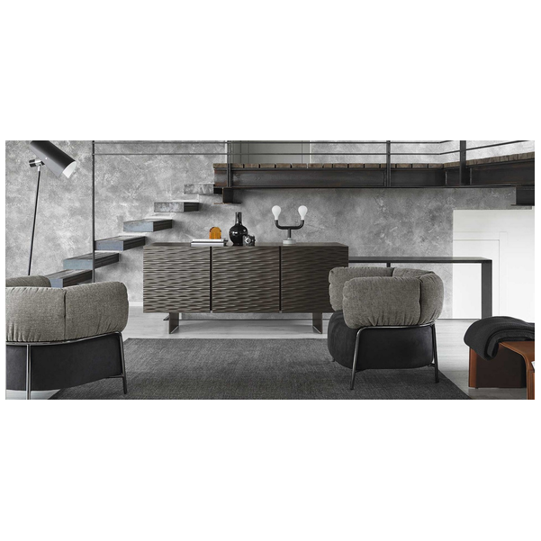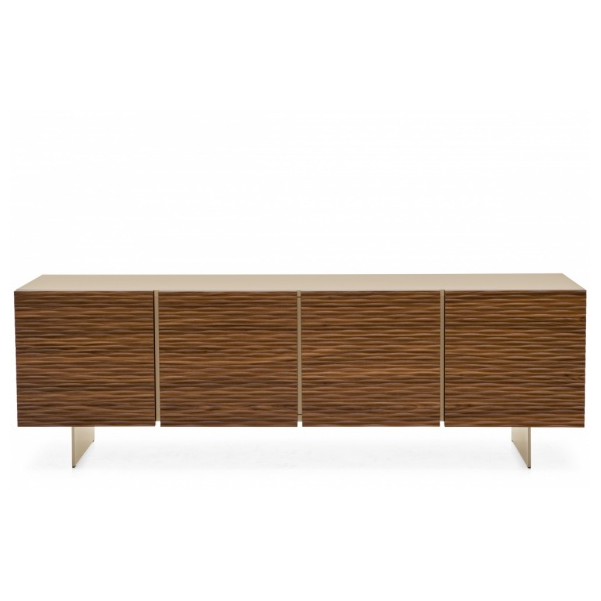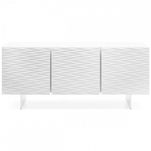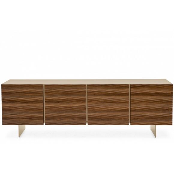 Komoda Opera z 3 przegrodami i 4 drzwiami. Wyczuwalny, dekoracyjny wygląd kredensów Opera z lakierowaną strukturą i drewnianymi drzwiami z efektem 3D. Z charakterystyczną metalową lub przezroczystą podstawą z tafli szklanej, która dodaje lekkości ramie, tworząc efekt zawieszenia. Drzwi bez uchwytów posiadają mechanizm otwierania z magnesem typu push-pull. Zawiera 2 wewnętrzne drewniane półki z możliwością wyboru 3 regulowanych wysokości.