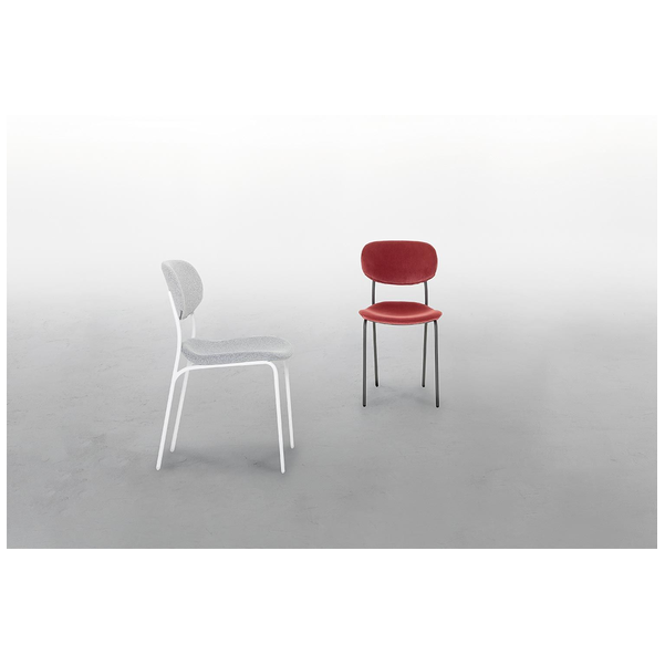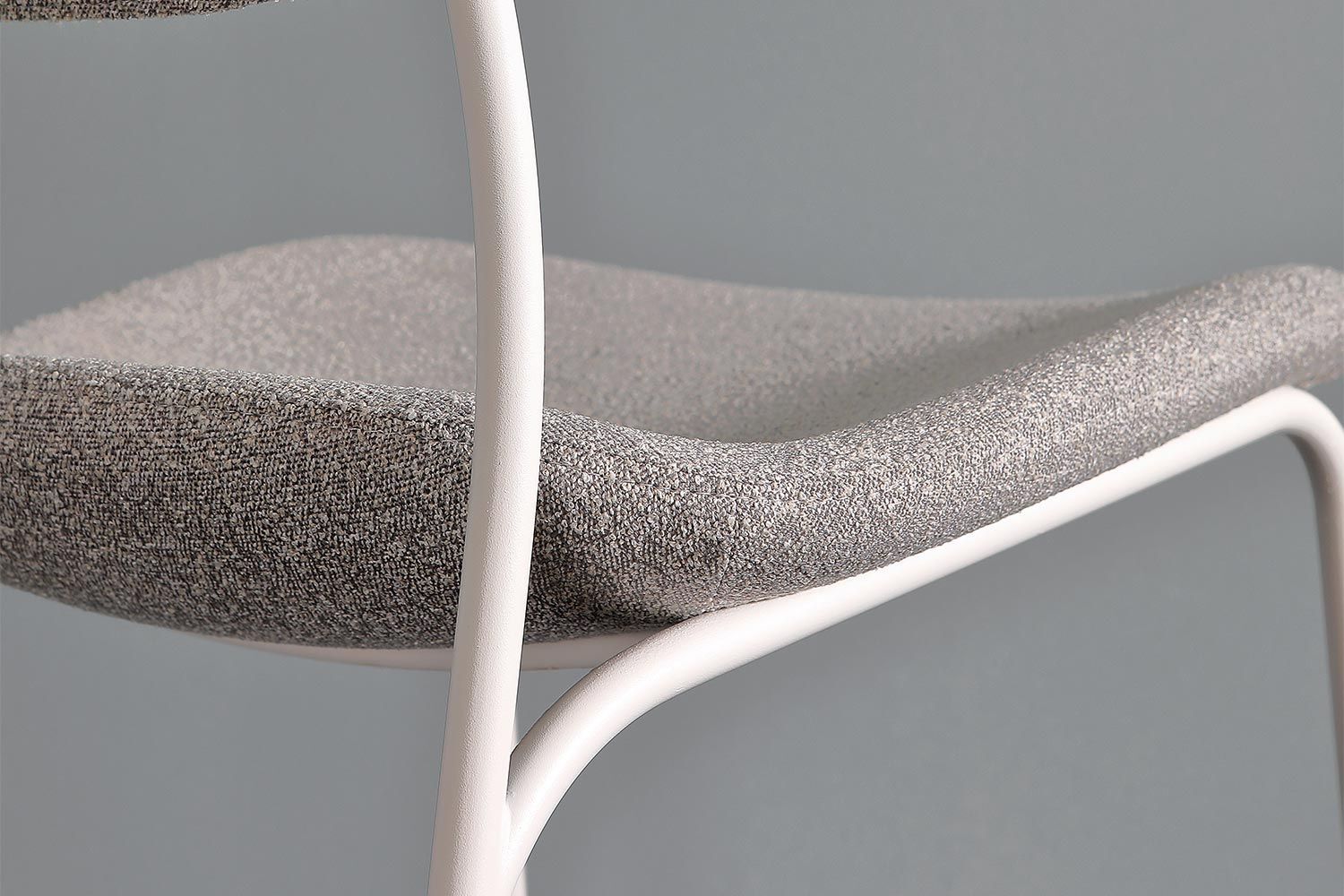 Mocna metalowa rama jest dostępna w różnych kolorach, a tapicerka jest dostępna w opcji ze skóry ekologicznej, skóry i tkaniny.