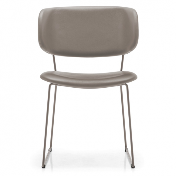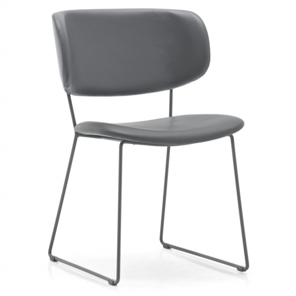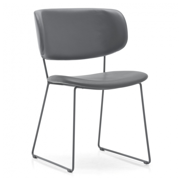 - Metalowe krzesło z tapicerowanym siedziskiem i oparciem.