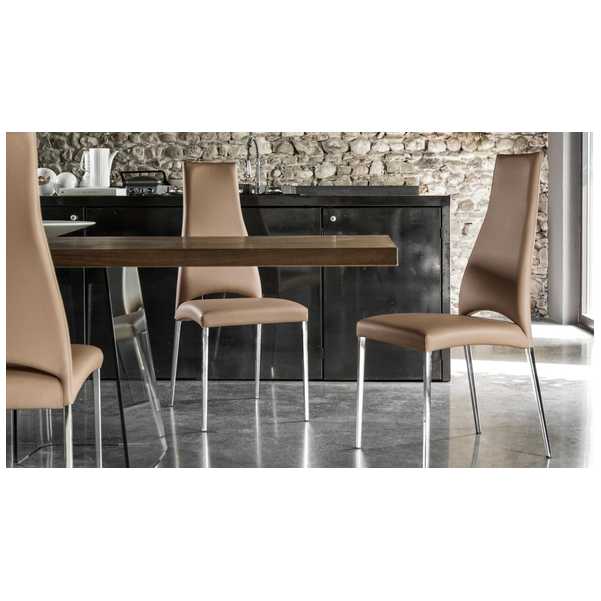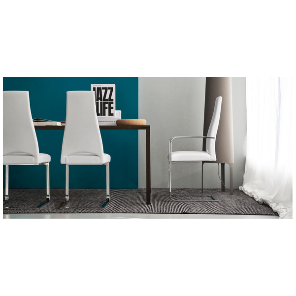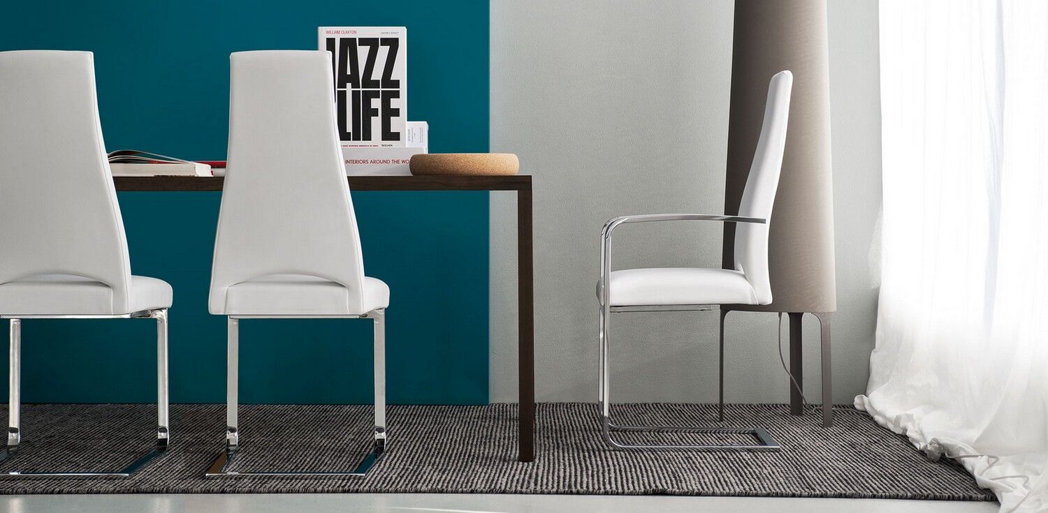 Model krzesła Juliet, z metalową podstawą i tapicerowanym siedziskiem. Zastosowanie rur stalowych umożliwiło uzyskanie lekkiego i wytrzymałego krzesła z czterema bardzo cienkimi nogami o przekroju prostokątnym. W pełni tapicerowane krzesło, siedzisko z elastycznymi pasami oraz wysokie wyprofilowane oparcie z wycięciem w dolnej części w kształcie półksiężyca gwarantują maksymalny komfort.