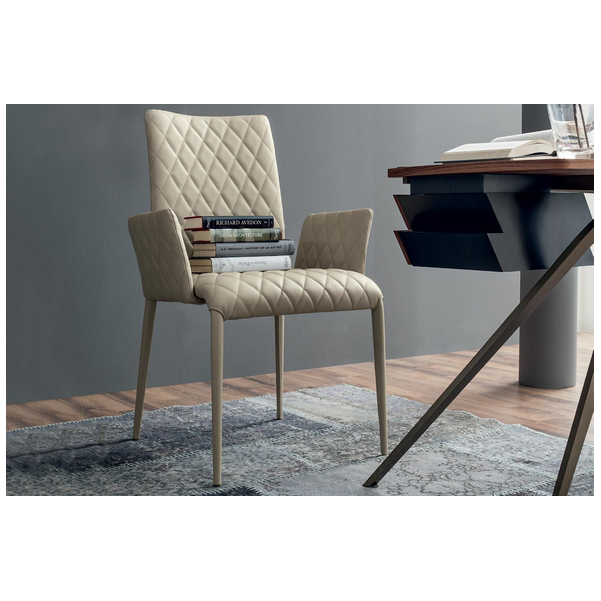 Krzesło, fotel do jadalni Kosmos marki Tonin Casa to gustowna opcja do nowoczesnej jadalni. Minimalistyczny design i kontrast między siedziskiem a nogami stanowią elegancki element. Miękka i luksusowa wyściełana tapicerka zapewnia wygodę podczas posiłków, a lekko odchylony tył zapewnia ergonomiczne wsparcie. Połącz z szeregiem stołów do jadalni Tonin Casa, aby stworzyć spójną koncepcję projektową. Dostępne są różne opcje tapicerki z tkaniny, skóry i skóry ekologicznej, a nogi mogą być dopasowane do siedziska lub być wykończone w wielu metalowych opcjach. Wybierz wersję standardową lub pikowaną.