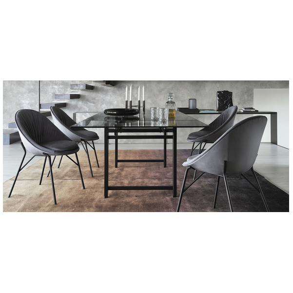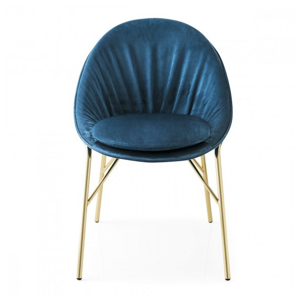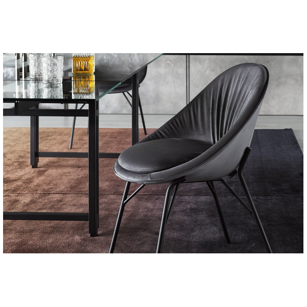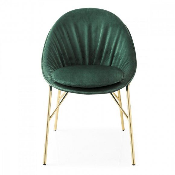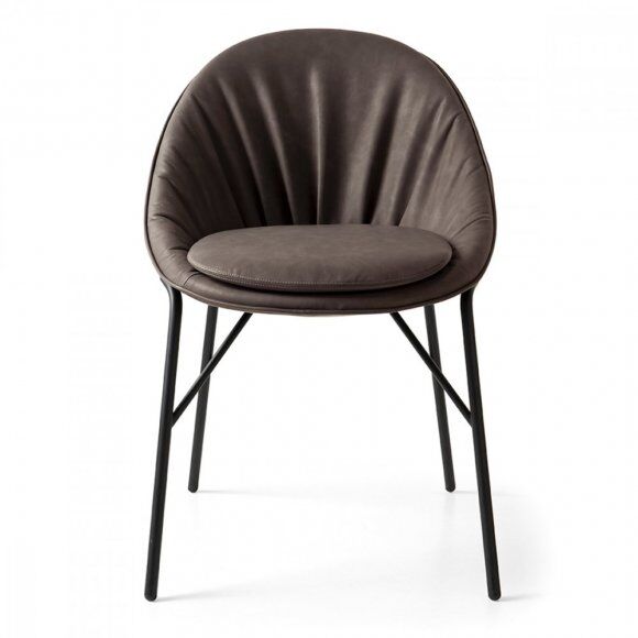 Otulające, płynne i zmysłowe linie dla Lilly, stylowego krzesła miękkości. Siedzisko o zaokrąglonych kształtach i miękkiej wyściółce jest wsparte smukłą metalową ramą. Zintegrowana poduszka, dopasowana do siedziska, zapewnia najwyższy komfort.