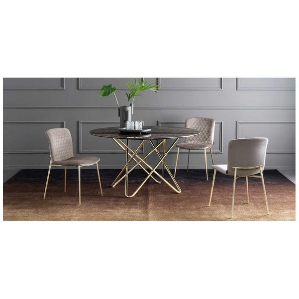 Love jest częścią nowej serii wyściełanych krzeseł o delikatnie wyrzeźbionej sylwetce i nieco vintage'owym klimacie. Charakterystycznym detalem łączącym wszystkie elementy kolekcji jest element na oparciu, który jest eleganckim przedłużeniem metalowych nóg. Ten uderzająco stylowy element świadczy o niekonwencjonalnym wzornictwie między siedziskiem z tkaniny, a ramą nośną. Jego miękka wyściółka i wyrafinowane detale na metalowej ramie sprawiają, że krzesło Love staje się luksusem na co dzień.