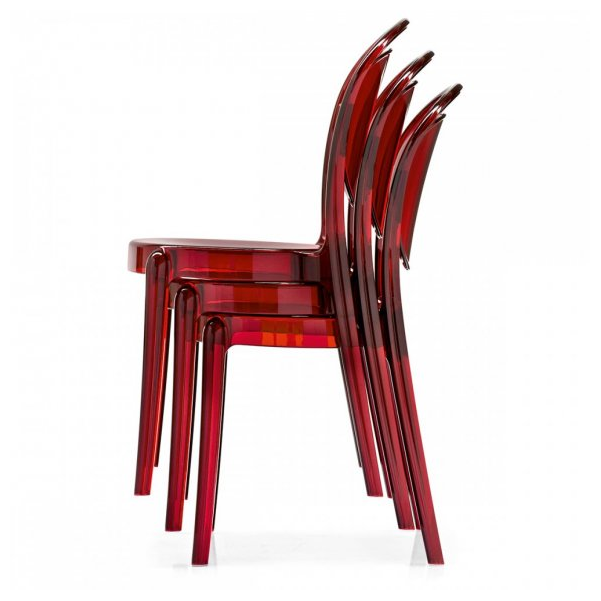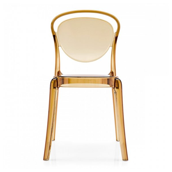 Krzesło monoblokowe Parisienne, w całości wykonane z poliwęglanu, do ustawiania w stosy do czterech krzeseł, nadaje się również do użytku zewnętrznego. Krzesło charakteryzuje się zaokrąglonymi kształtami i brakiem ostrych krawędzi, co przywołuje delikatny styl klasycznych francuskich krzeseł bistro z początku XX wieku. Wykonany z poliwęglanu, materiału zapewniającego doskonałą odporność na wstrząsy i warunki atmosferyczne, jest bardzo lekkie i łatwe do przenoszenia. Niezwykle funkcjonalne, o niepowtarzalnym designie, jest idealnym krzesłem do dekoracji kuchni, baru czy części wspólnych na zewnątrz. Dostępne w różnych wykończeniach, błyszczące lub przezroczyste.