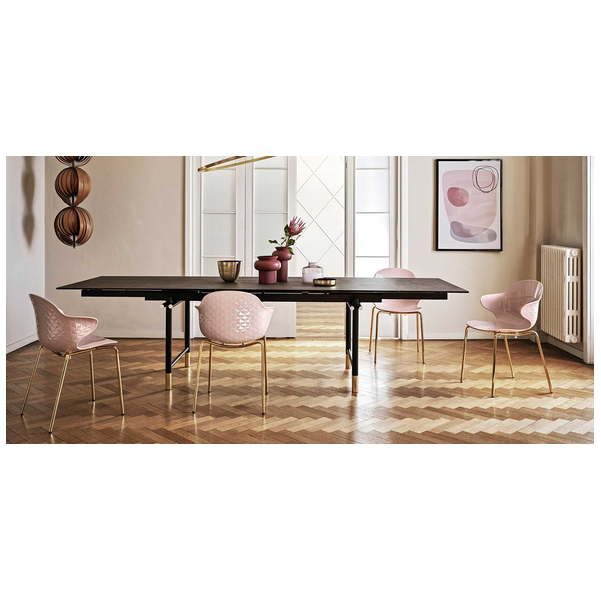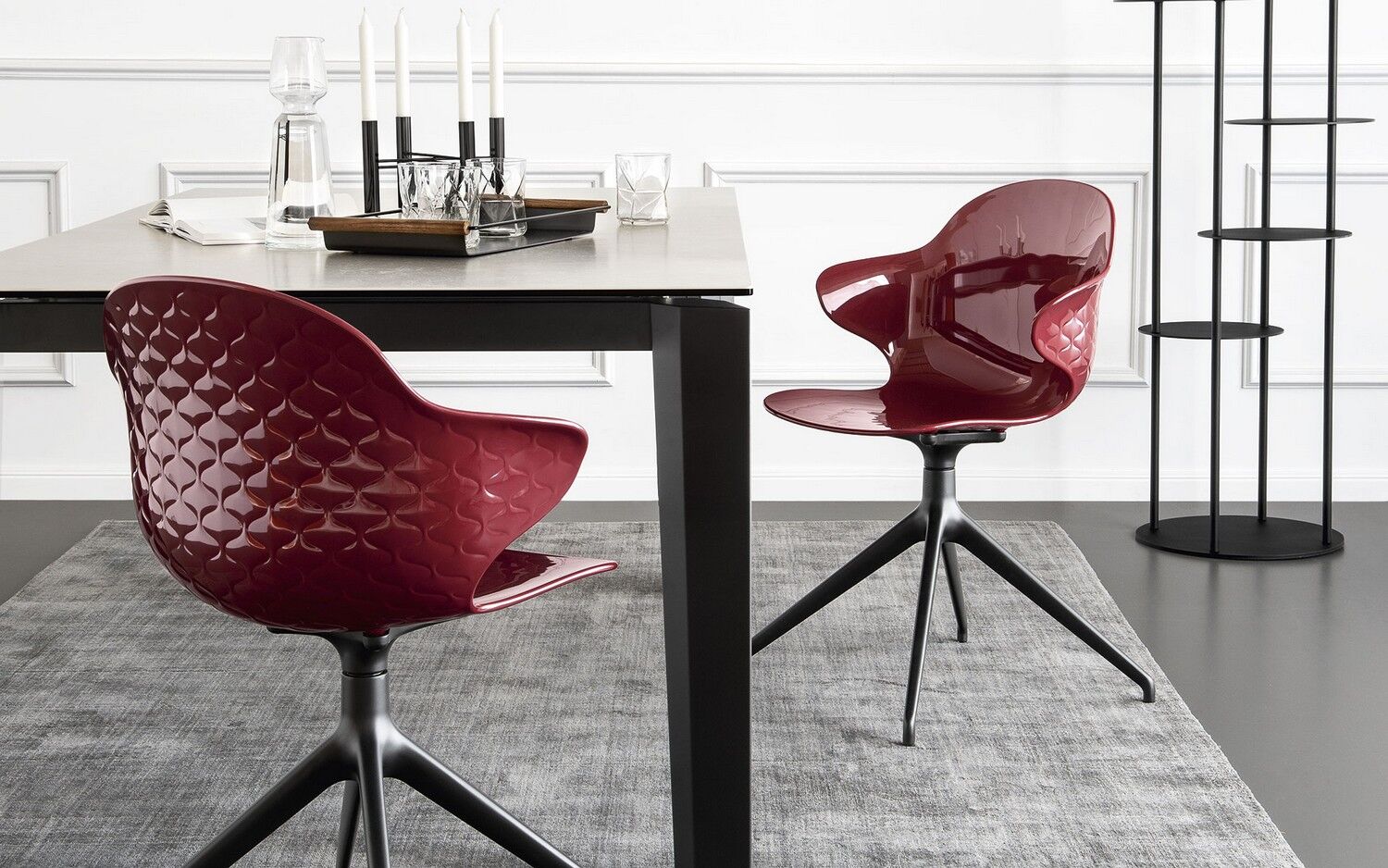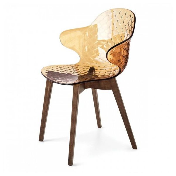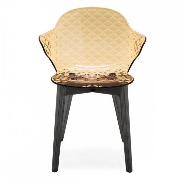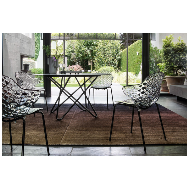 Kreatywny duch, skrzyżowanie formy i funkcji, wyróżnia krzesło Saint Tropez, które szczyci się dbałością o szczegóły i wyrafinowanym designem z oparciem z efektem pikowania. Powłoka z poliwęglanu jest wykonana w szeregu przezroczystych i nieprzezroczystych odcieni i jest zamontowana na czteronożnej metalowej podstawie.