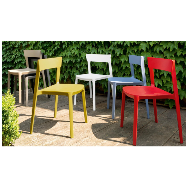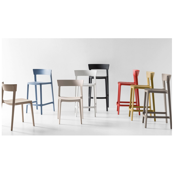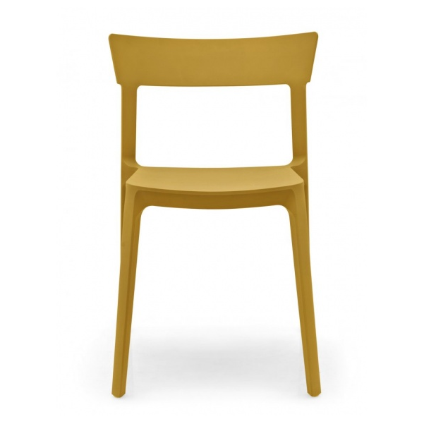 Model Skin monoblokowe krzesło, można układać w stosy do sześciu krzeseł. Krzesło monoblokowe wykonane techniką wtrysku airmoulding. Ten proces zapewnia wyjątkową wytrzymałość, a także zmniejsza wagę produktu. Wysoce odporne, odporne na wstrząsy nóżki z polietylenu są wymienne. Dostępne z polipropylenu, odpowiednie do użytku na zewnątrz. Projekt o czystych i zdecydowanych liniach, idealny do domu lub baru. Wybierz preferowaną kombinację.
