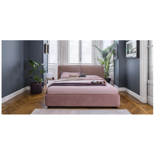 Dolly kładzie oryginalny skos na tradycyjnym zagłówku, który otacza krawędzie łóżka od dołu, otulając je jak elegancką skorupę i łącząc dwie oddzielne poduszki. Dostępne z trzema wersjami nóżek z drewna i jednej z metalu, z możliwością wyboru wyglądu i wysokości od podłoża, która najbardziej odpowiada klientowi. Łóżko przeznaczone jest do stałego dna łóżka lub jednostki kontenerowej. Tapicerowane tkaniną lub skórą z możliwością wyboru spośród różnych materiałów i wykończeń poduszek i zewnętrznego poszycia wezgłowia. Dolly łączy w sobie współczesny chłód i rzemieślniczą estetykę, co wysuwa na pierwszy plan jej krawiecki styl.