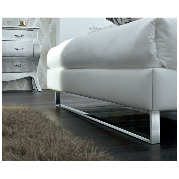 Elite, łóżko marzeń: na pierwszy rzut oka imponujące pikowane wezgłowie i staranne detale, takie jak przednia podstawa z jasnego metalu i tylne nogi z pleksiglasu.