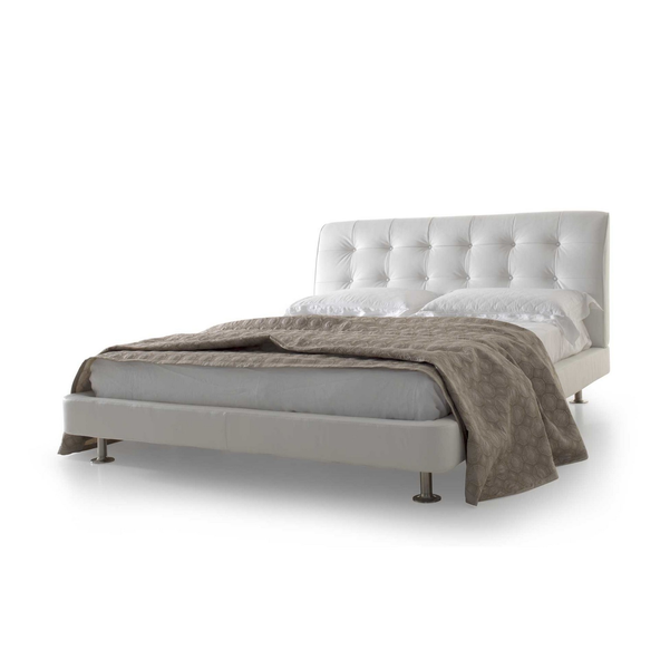 Miękkie i przytulne linie. Zagłówek charakteryzuje się wyrafinowanym konturem, który podkreśla elegancki kształt, wzbogacony delikatną tapicerką w nowoczesnym procesie pikowania z małymi guzikami. Geo to łóżko o dokładnej, zasadniczej prostocie, zdolne do wyrażenia silnego poczucia komfortu.