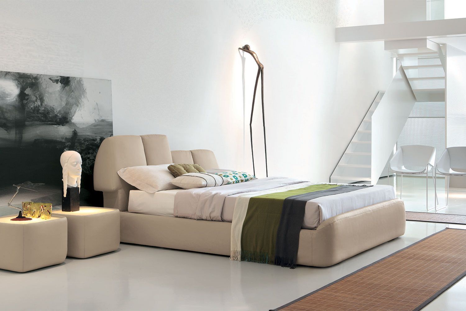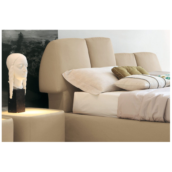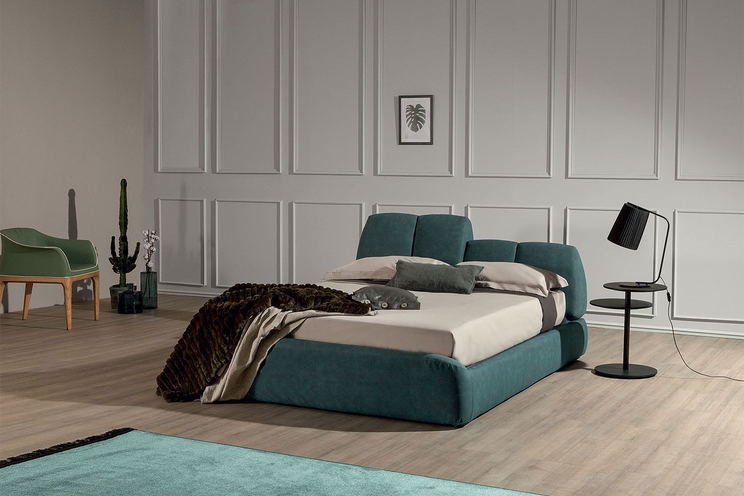 Łózko Tuny łączy w sobie siłę, czystość i harmonię: zagłówek, podzielony na cztery różne sekcje, tworzy jedyną w swoim rodzaju geometrię. Pokryte jest skórą, ekoskórą lub tkaniną z impregnacją wodoodporną, odporną na plamy.