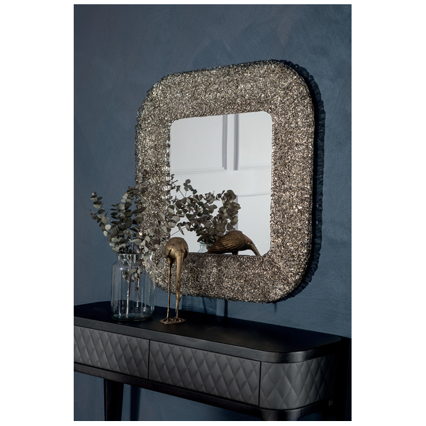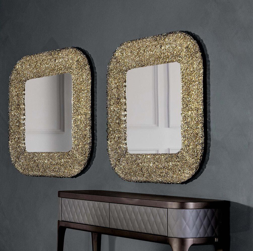 Dodaj olśniewającego stylu do nowoczesnego domu z luksusowym lustrem Macrabe. Dzięki ramce z przydymionego stapianego szkła, która mieni się w świetle, lustro stanowi piękny punkt centralny i wyrafinowany element rozmowy. To wiszące na ścianie lustro jest nie tylko pięknym dziełem sztuki, ale także wygodnym sposobem sprawdzenia swojego odbicia i złudzenia, że pomieszczenie jest większe, niż się wydaje. Wyprodukowane we Włoszech dla bezkompromisowej jakości, lustro Macrabe jest częścią luksusowej kolekcji obejmującej lampę wiszącą i lampę stołową. Lustro ma kwadratowy i prostokątny kształt z srebrnym lustrzanym wykończeniem.