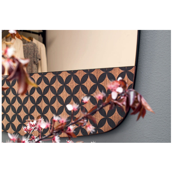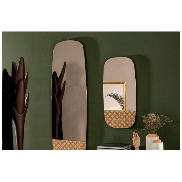 Lustro Marguerite marki Tonin Casa dodaje charakteru współczesnemu domowi. Przyciągający wzrok geometryczny wzór wzdłuż krawędzi dodaje urzekającego stylu, który wyskakuje na odblaskowej powierzchni. Dzięki zastosowaniu tylko najlepszych materiałów lustro zachowuje trwałość na długie lata. Jest to nie tylko funkcjonalny element nowoczesnego wystroju, ale także piękna grafika ścienna. Marguerite jest dostępne w małym, średnim i dużym rozmiarze. Drewniana konstrukcja ma różne wykończenia i dostępne są różne wykończenia lustrzane.