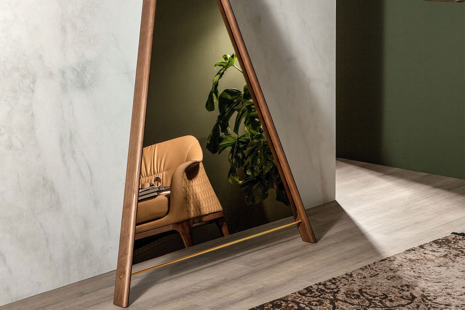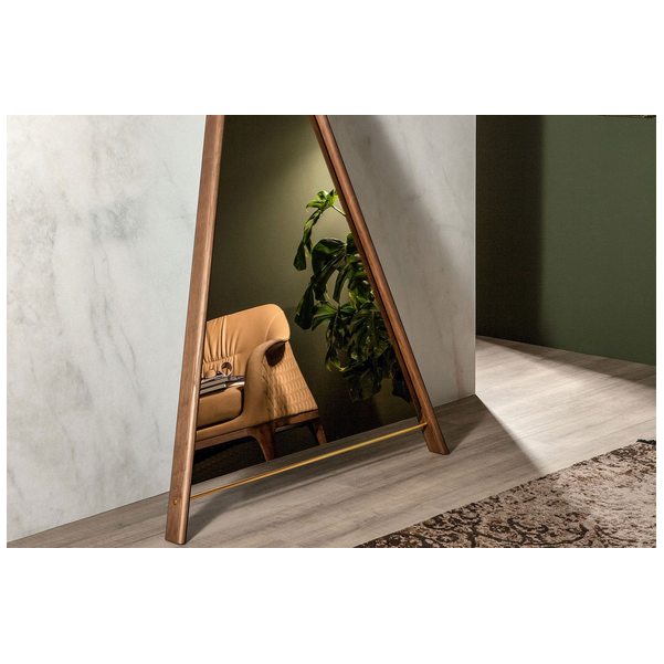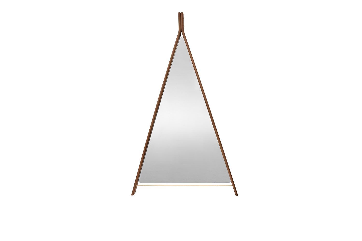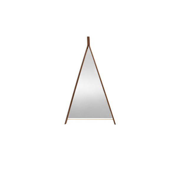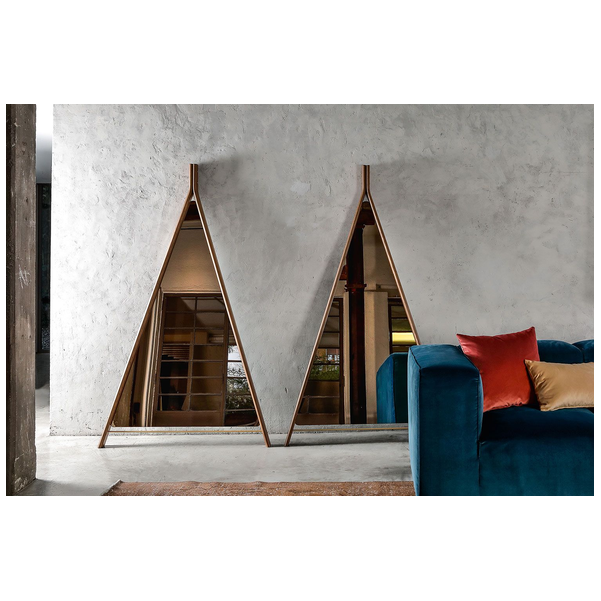 Odważne i przyciągające wzrok lustro Suite firmy Tonin Casa to wspaniała opcja dekoracyjna do nowoczesnego domu. Trójkątny profil przypomina tipi ze względu na ostry akcent. Dzięki drewnianej ramie wyróżnia się na tle odblaskowego szkła, a oba materiały są najlepszej możliwej jakości, aby zapewnić trwałość przez długi czas. Element podłogowy to wygodny element, który umożliwia umieszczenie go w różnych miejscach. Lustro jest dostępne w wykończeniu srebrnym i brązowym, rama dostępna jest w różnych opcjach wykończenia drewna.