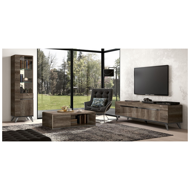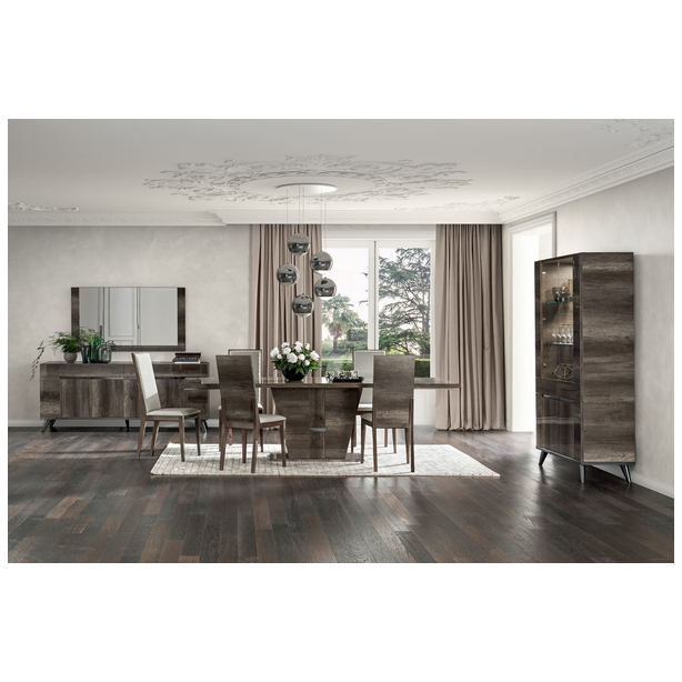 Medea to stylowy zestaw, który łączy w sobie urok nowoczesności z lekką nutą klasyki. Kolekcja opracowywana jest z uwzględnieniem trendów branży meblarskiej z wykorzystaniem tajnych technik produkcji i zdobienia, wyposażenia, innowacyjnych materiałów, które podkreślają kreatywne myślenie projektantów, którzy swoje śmiałe pomysły ucieleśniają w kompozycji. Meble charakteryzują geometryczne kształty, prezentowane w wykończeniu vintage dąb, w błyszczących lakierach, których aplikacja odbywa się w kilku etapach. Całość zdobią również: przezroczyste szkło hartowane, polerowane chromowane fazowane nogi gablot, cokoły i kredensy, lustra, wbudowane oświetlenie, a także ekoskóra tapicerka krzeseł.