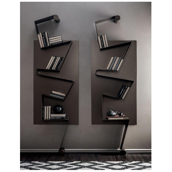 Regał Nota może służyć jako sposób na wyeksponowanie osobistej biblioteki, rzeźbiarskie dzieło sztuki, które wyróżnia się stylem w nowoczesnym domu. Inspirowana geometrią struktura jest pełna przyciągających wzrok krzywizn i kątów, dzięki czemu jest to jedyny w swoim rodzaju produkt. Niektóre powierzchnie są równe, podczas gdy inne są lekko pochylone, aby uczynić z tego ostry punkt centralny w salonie lub biurze. Aby uzyskać fajną funkcję, regał daje złudzenie, że balansuje całą konstrukcją na małej podstawie, ale jest bezpiecznie przymocowany do ściany. Metalowa konstrukcja jest dostępna w szeregu matowych wykończeń.
