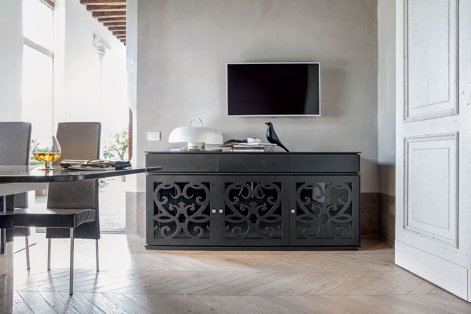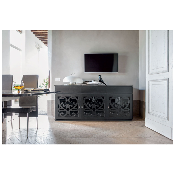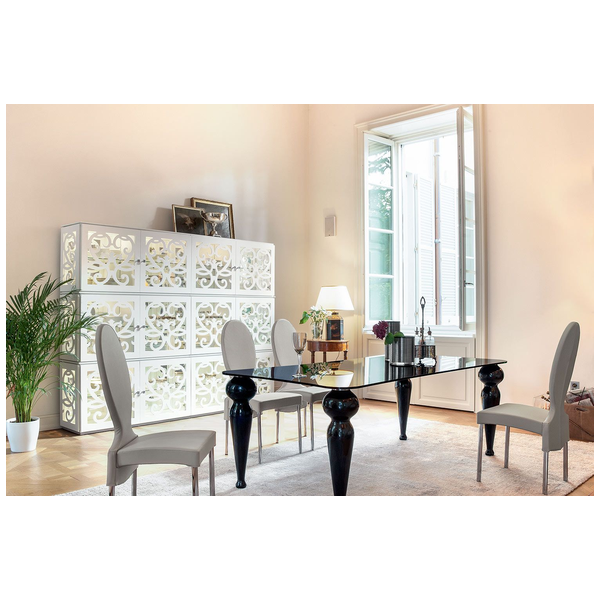 Dodaj wyrafinowany styl do swojego nowoczesnego domu, dzięki niezwykłemu kredensowi Paris marki Tonin Casa. Mnóstwo miejsca w każdej szafce sprawia, że wszystkie Twoje rzeczy są ukryte i uporządkowane. Niesamowita dbałość producenta o szczegóły zapewnia trwałość na długi czas. Paris jest częścią luksusowej kolekcji Paris. Struktura jest dostępna w różnych matowych wykończeniach, drzwi wyposażone są w różne opcje szkła.