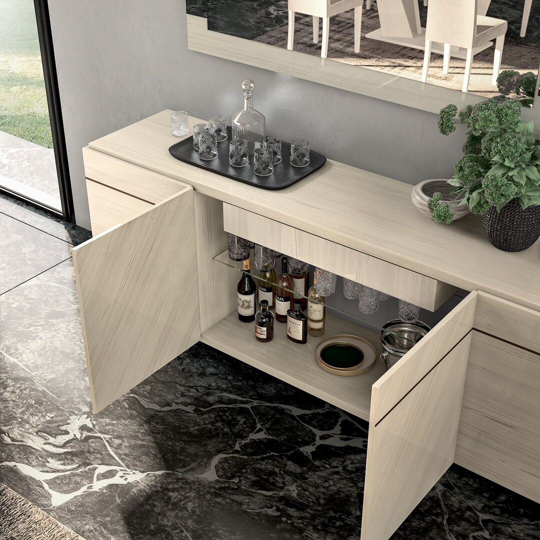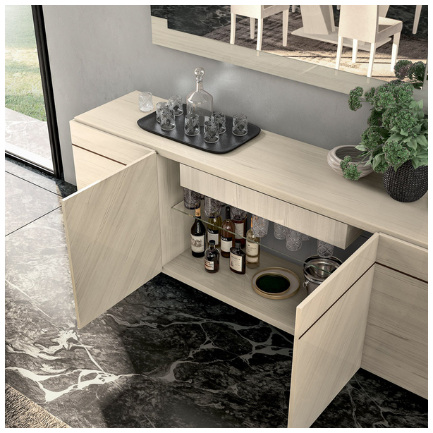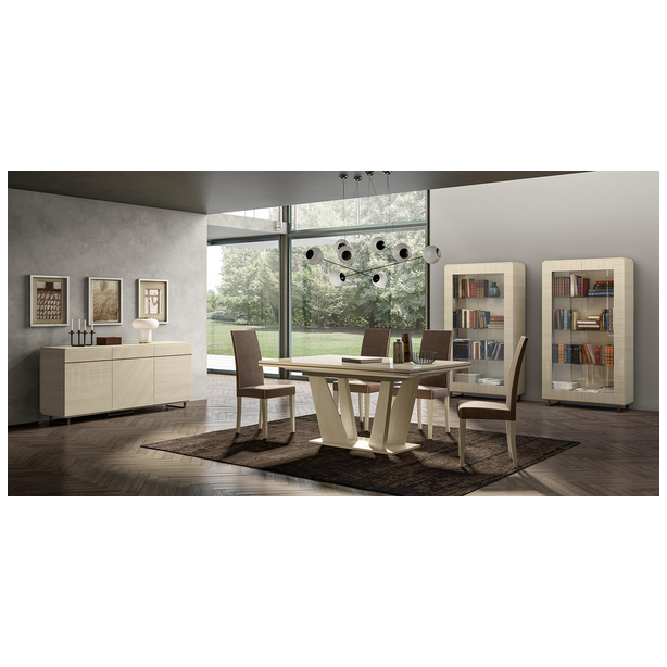 Perla to kolejne arcydzieło, które jest nowością we współczesnym meblarstwie. Pierwotna decyzja projektantów umożliwiła, przy użyciu innowacyjnych i wysokiej jakości materiałów, stworzenie kolekcji jasnej, przemyślanej w najmniejszym szczególe. Jego walory funkcjonalne i estetyczne przypadną do gustu tym, którzy żyją z duchem czasu, cenią niebanalne rozwiązania projektowe i doskonałą jakość. Kolekcja wykonana jest z materiału imitującego biały dąb, pokrytego kilkoma warstwami błyszczących lakierów. Uzupełnieniem mebli jest przezroczyste szkło hartowane, lustra, wbudowane oświetlenie, metalowe podstawy. Do obicia krzeseł wybieramy ekoskórę i mikrofibrę.