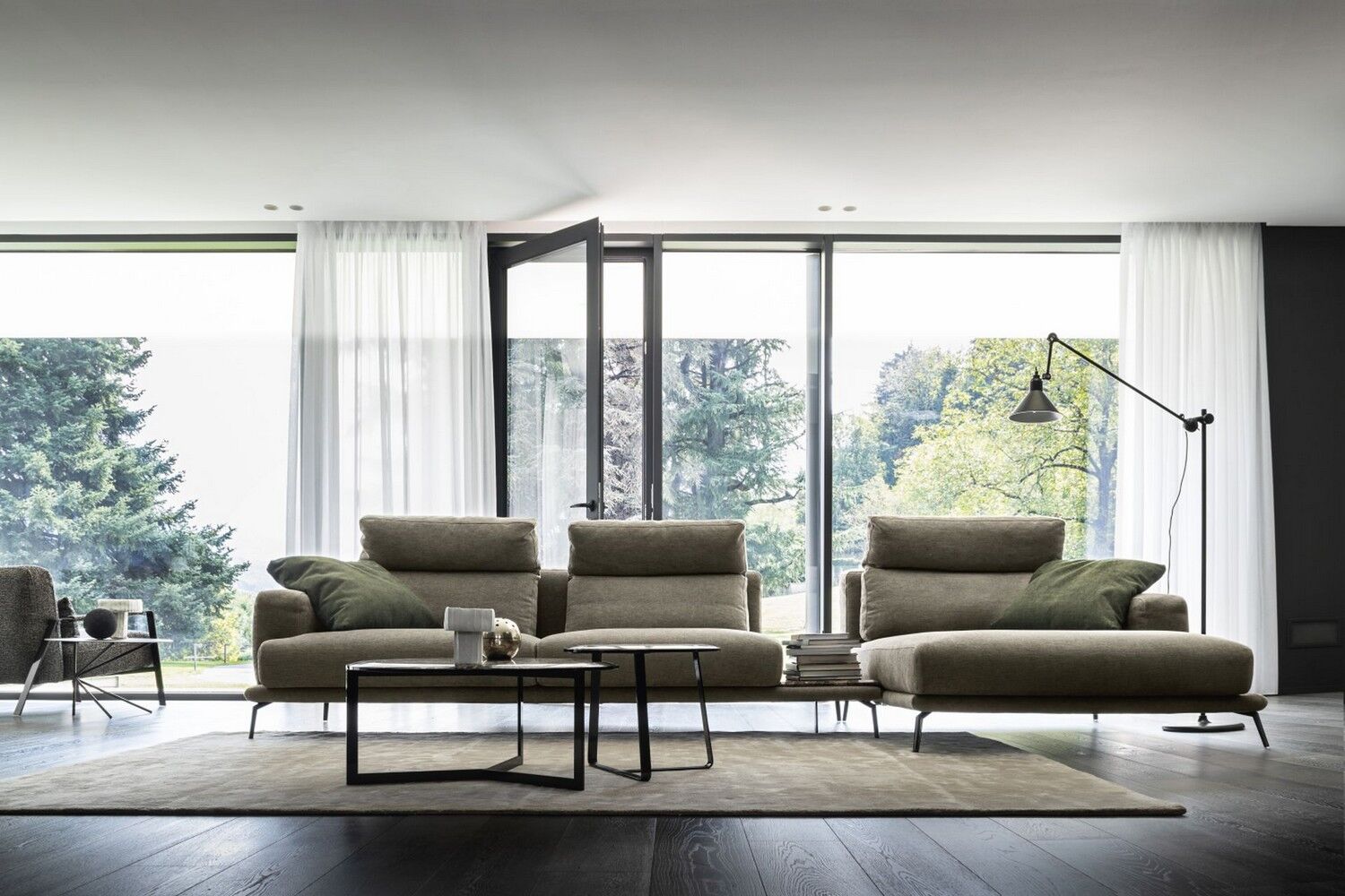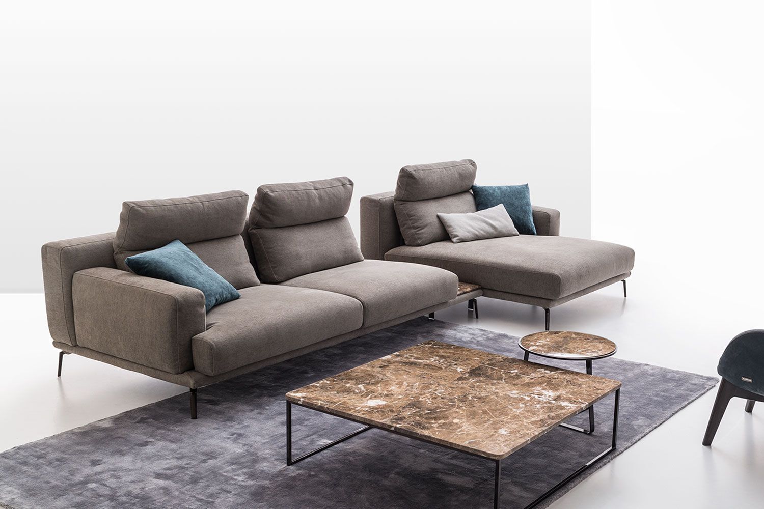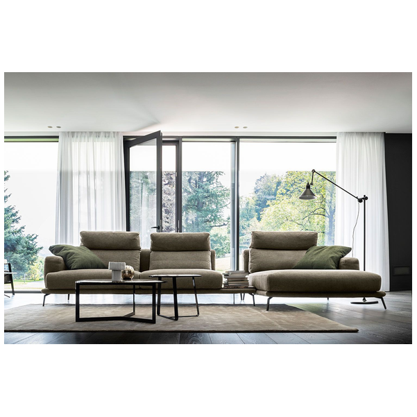 Idealna w każdym ustawieniu, sofa Babila ma sztywną konstrukcję, przerywaną miękkimi liniami lekko pochylonych poduch oparciowych i zagłówków. Pełna wygodnych funkcji sofa to jedyny w swoim rodzaju produkt ze zintegrowanym stolikiem bocznym między dwiema poduszkami i wygodnym szezlongiem. Dzięki miękkiej tapicerce i amortyzującej wyściółce zapewnia wygodę przez wiele godzin. Dostępna w wersji ze skóry i tkaniny.