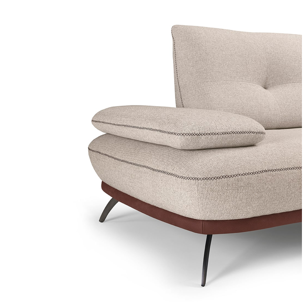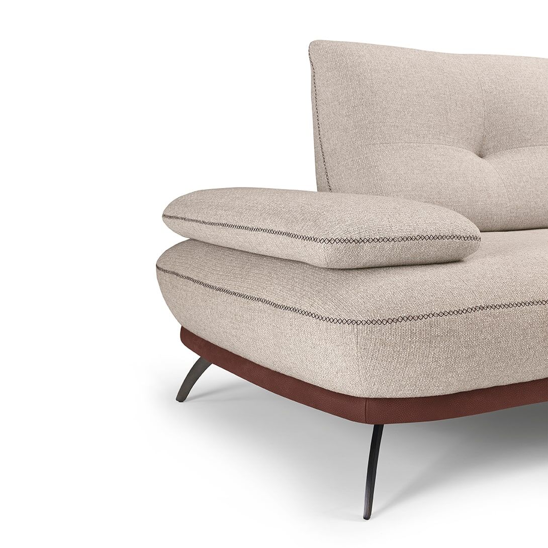 Bogata w detale sofa Bogart, od pikowania siedziska i oparcia po dwukolorową podstawę, ważną rzeczą jest wykończenie specjalnym szwem X, który charakteryzuje cały model. Wyściółka z pianki poliuretanowej o różnej gęstości, dostępna w wersji ze skóry i tkaniny, z wykończeniem metalowej stopy.