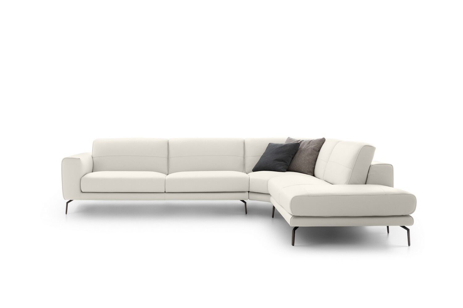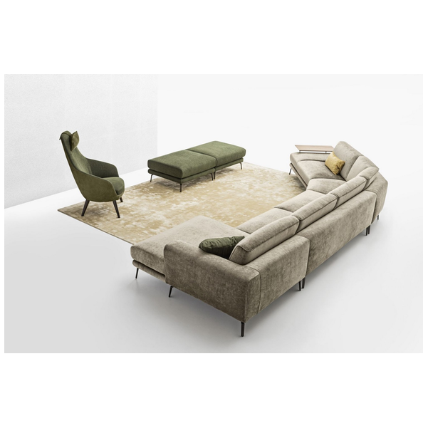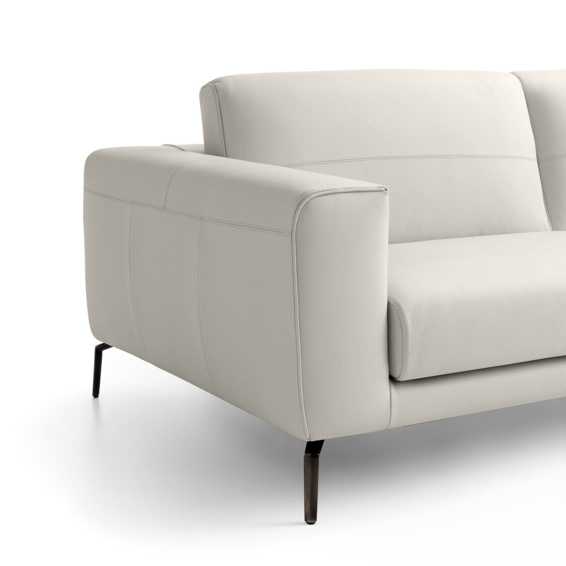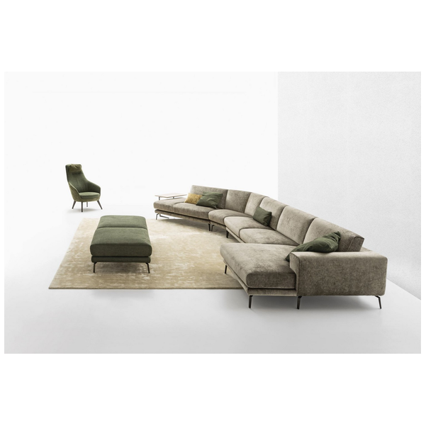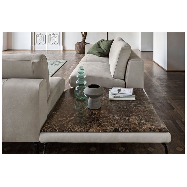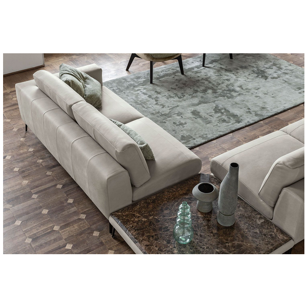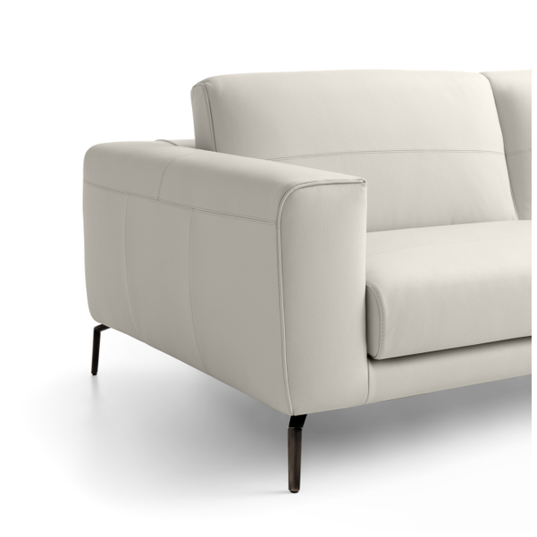 Minimalistyczna sylwetka nadaje pomieszczeniu ponadczasowego wyglądu i dobrze komponuje się z resztą współczesnych mebli. Dzięki misternym przeszyciom na podłokietnikach i poduszkach tworzy wzór w paski, który przyciąga wzrok. Luksusowo miękka tapicerka i wyściełana wyściółka zapewniają komfort przez wiele godzin, co czyni go jednym z najlepszych siedzeń w domu. Dostępna w wersji ze skóry i tkaniny.