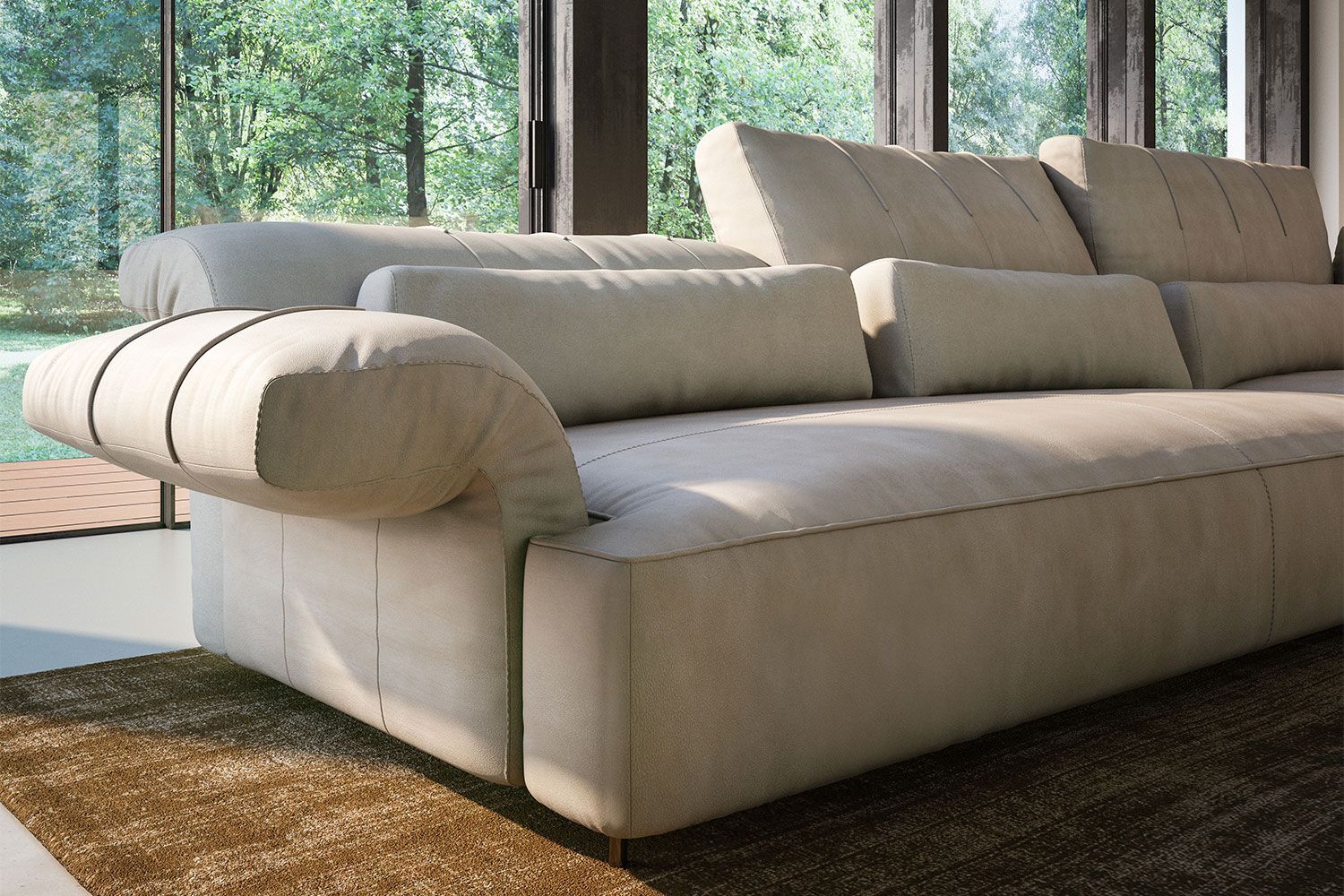 Sofa Brera firmy Nicoline Italia nadaje niepowtarzalny styl nowoczesnemu salonowi. Regulowane zagłówki i podłokietniki zapewniają ergonomiczne podparcie, a także wygodę. Dzięki klasycznej sylwetce zapewnia ponadczasowy wygląd i dobrze komponuje się z resztą wyposażenia i wystroju. Dzięki doskonałemu włoskiemu kunsztowi sofa jest trwała przez wiele lat. Sofa dostępna jest w wersji ze skóry i tkaniny.