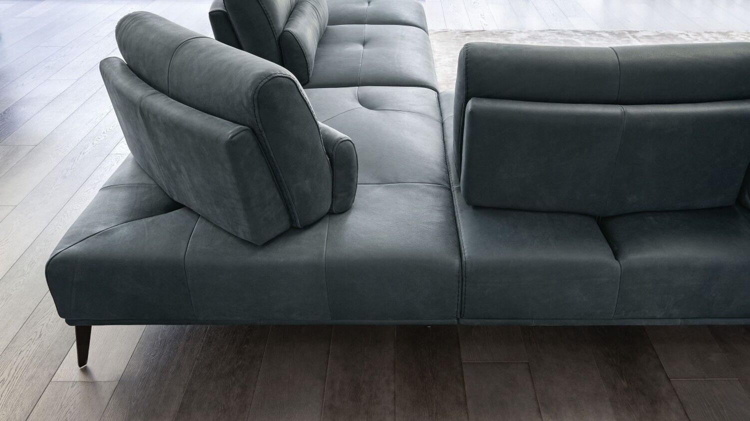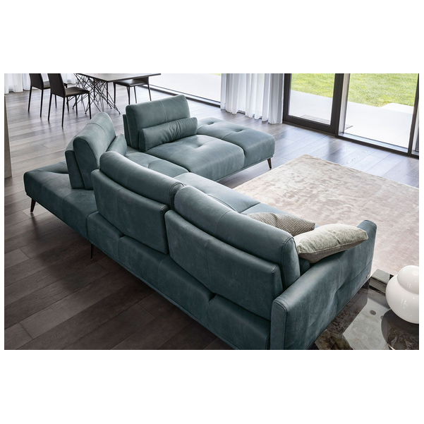 Sofa segmentowa Canarie z szezlongiem firmy Nicoline Italia płynnie łączy wygodę ze stylem, tworząc jedyne w swoim rodzaju rozwiązanie do siedzenia. Ruchome poduszki oparcia z łatwością przesuwają się do tyłu, tworząc głębsze i przytulniejsze siedzisko, a część szezlonga zapewnia dużo miejsca na rozciągnięcie się i odpoczynek. Dzięki misternym przeszyciom na poduszkach i na krawędziach sofa ma szykowny wygląd i robi wrażenie w pomieszczeniu. Dzięki wysokiej jakości konstrukcji sofa będzie stałym elementem wyposażenia na pokolenia. Wyprodukowana we Włoszech z niezwykłą dbałością o szczegóły, sofa segmentowa Canarie z szezlongiem jest dostępna w dwóch rozmiarach oraz w konfiguracji lewej i prawej. Wybierz między różnymi opcjami tapicerki z tkaniny i skóry, a także dopasowanymi, jaśniejszymi lub ciemniejszymi przeszyciami. Nogi mają różne metalowe wykończenia.