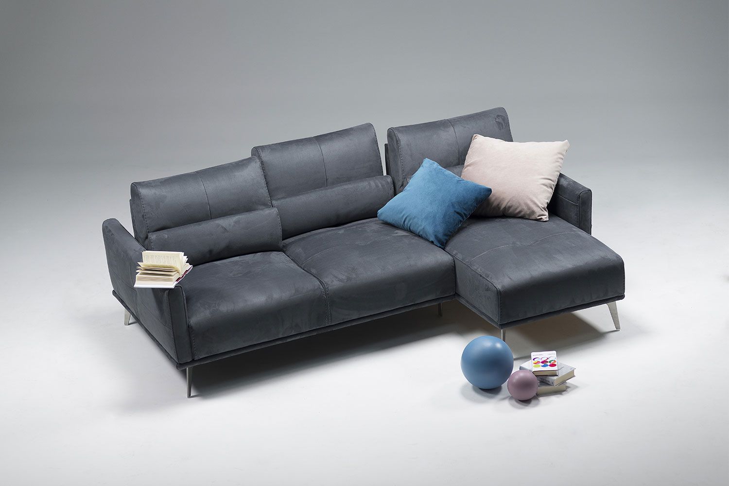 Praktyczny narożnik Canarie firmy Nicoline Italia robi imponujące wrażenie w nowoczesnym salonie. Ukośna poduszka w rogu uzupełnia proste poduszki po obu stronach, zapewniając urzekający dotyk. Dzięki ruchomym poduszkom oparcia w kilka sekund tworzy głębsze i wygodniejsze siedzisko. Dzięki misternym przeszyciom i kontrastującym materiałom sofa błyskawicznie poprawia wygląd otoczenia. Występuje w dwóch rozmiarach w konfiguracji lewej i prawej, a nogi są wykończone w wielu metalowych opcjach. Wybieraj spośród różnych tkanin i skór na tapicerkę, a szwy mogą mieć pasujący, jaśniejszy lub ciemniejszy kolor.