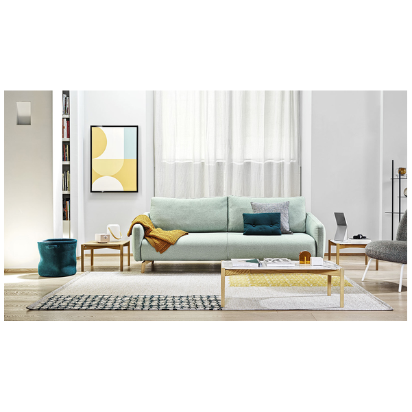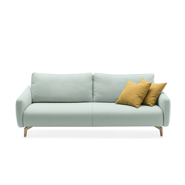Sofa Finland to minimalistyczny i elegancki design inspirowany stylem skandynawskim, wizualnie lekki dzięki cienkim drewnianym nóżkom, które unoszą ją nad ziemię. Duże poduszki do siedzenia i małe poduszki dekoracyjne zapewniają zrównoważoną ogólną estetykę i duży komfort. Finland jest dostępna zarówno w wersji stałej, jak iz kilkoma pojedynczymi kompozycjami, w tym szezlongiem, otomaną i otwartą częścią wypoczynkową. Lekko vintage sofa, która wchodzi do salonu, tworząc atmosferę i personalizując pomieszczenie.