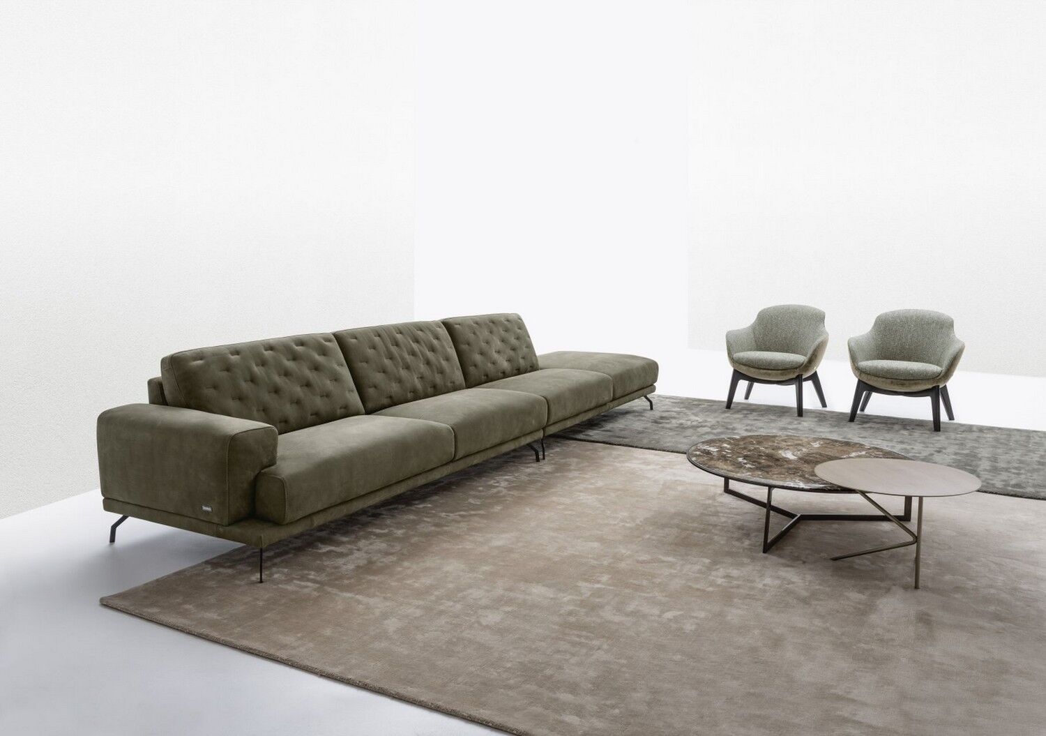 Sofa Gerba to wspaniały mebel, który będzie elementem wyposażenia nowoczesnego domu. Sylwetka nadaje pomieszczeniu odważnego stylu i jest niezwykle szczegółowa, dzięki liniowemu wzorowi szwów. Dzięki amortyzującej wyściółce i miękkiej tapicerce będzie jednym z najwygodniejszych siedzeń w domu. Jest wystarczająco dużo miejsca, aby z łatwością pomieścić wiele osób i pozwala rozciągnąć się na dużym półwyspie. Wyprodukowana we Włoszech z niesamowitą dbałością o szczegóły, sofa Gerba jest dostępna w wielu rozmiarach oraz w konfiguracji lewej i prawej. Wybierz jedną z wielu opcji tapicerki z tkaniny i skóry, a szwy będą dostępne w dopasowanych, jaśniejszych lub ciemniejszych kolorach. Nogi są dostępne w różnych kolorach metalu.