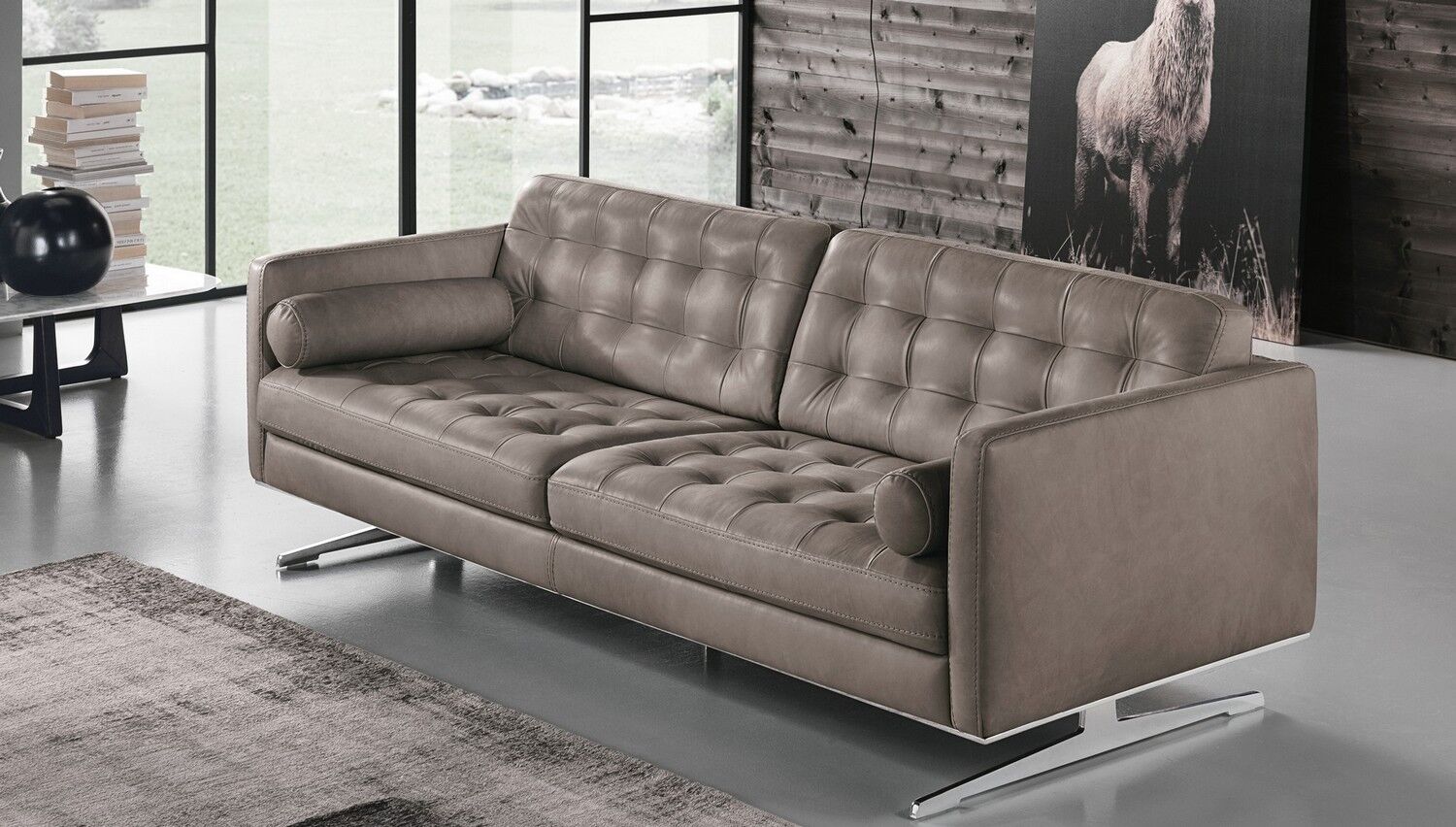 Klasyczna koncepcja włoskiego salonu została uzupełniona nowoczesnością w Gran Torino, sofa tapicerowana tkaniną lub skórą, doskonałość Made in Italy. Gran Torino charakteryzuje się subtelnie pikowanym oparciem, wspartym na metalowych nóżkach. Do podłokietników zgodnych z kształtami podyktowanymi konstrukcją modelu dodano poduszki, które dają możliwość dostosowania nie tylko stylu, ale także komfortu.