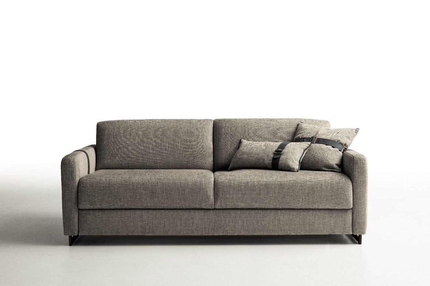 Usiądź, rozluźnij się lub połóż się i wyśpij dobrze na eleganckiej i praktycznej sofie Maya firmy Nicoline Italia. Sofa łatwo przekształca się w łóżko, po prostu rozkładając oparcie i poduszki siedziska, które składają się pod materacem, co jest idealne do miejsc, w których brakuje miejsca. Przyciągające wzrok sprzączki dodają jej stylowego akcentu, który sprawia, że sofa jest wspaniałym centralnym punktem. Dzięki miękkiej tapicerce i wyściełanej wyściółce zarówno na poduszkach sofy, jak i na materacu, sofa zapewnia wygodę i wsparcie przez wiele godzin. Maya dostępna jest w dwóch rozmiarach, aby zaspokoić indywidualne potrzeby. Dostępne są opcje tapicerki materiałowej i skórzanej, a także dopasowane, jaśniejsze lub ciemniejsze szwy. Nogi są dostępne w wielu metalowych opcjach.