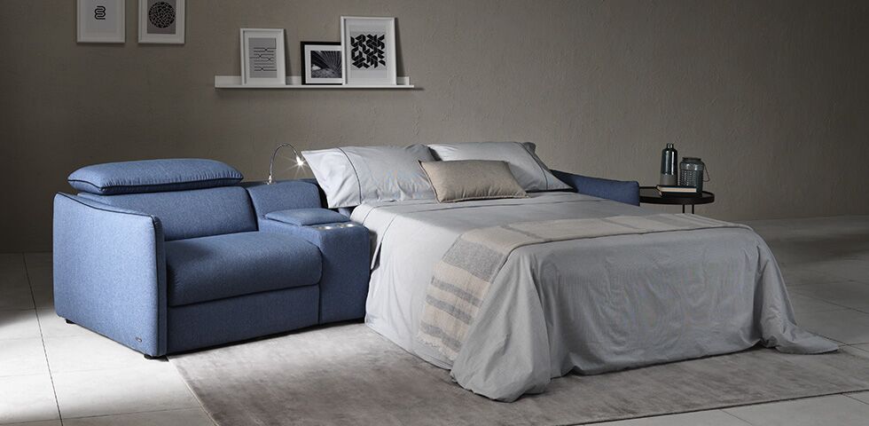 Asortyment Meraviglia obejmuje również pełnowymiarową rozkładaną sofę, elektrycznie regulowane krzesło oraz innowacyjną konsolę z miejscem na kubki i lampki do czytania.