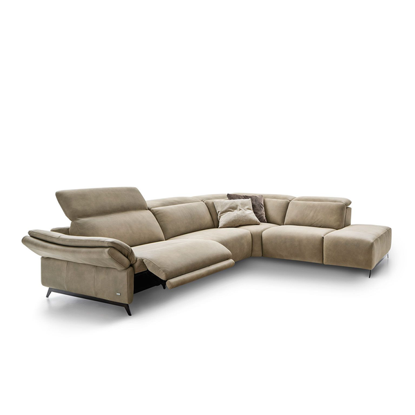 Narożnik Salina z rozkładanym fotelem firmy Nicoline Italia to wspaniały mebel, który będzie stanowić piękny element wystroju w nowoczesnym salonie. Pełna praktycznych funkcji sofa posiada niezależne elektryczne mechanizmy podnóżka i zagłówka, które pozwalają na precyzyjne odchylenie do własnych upodobań, a także regulowane podłokietniki dla większego komfortu. Klasyczna sylwetka dobrze komponuje się z resztą współczesnych mebli, tworząc spójny wygląd. Wyprodukowany we Włoszech z niezwykłą dbałością o szczegóły, Salina z rozkładanym fotelem jest dostępny w wielu rozmiarach oraz w konfiguracji lewej i prawej. Wybierz między różnymi opcjami tapicerki materiałowej i skórzanej, a także różnymi metalowymi wykończeniami nóg. Szwy są w dopasowanym, jaśniejszym lub ciemniejszym kolorze, a opcjonalny zestaw baterii umożliwia bezprzewodową pracę elektrycznego fotela i zagłówka.