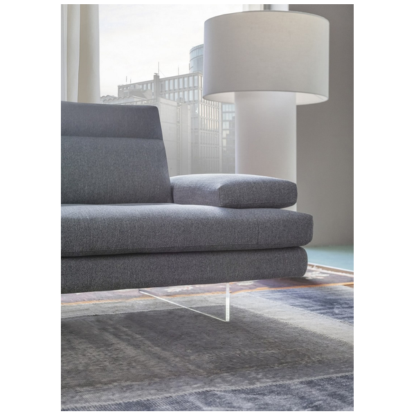 Dużo więcej niż sofa. Oparcia i przesuwne podłokietniki pozwalają na znaczne wydłużenie siedziska, dzięki czemu Toby Wing jest prawdziwą kanapą. Podobnie jak prawdziwe skrzydła, oparcia i podłokietniki Toby Wing są gotowe do rozłożenia, oferując wyjątkowe chwile komfortu. Oparcie pozwala na wydłużenie głębokości siedziska o 42 centymetry, natomiast podłokietnik zwiększa szerokość siedziska o 25 centymetrów. Skrzydło Toby'ego staje się kolejnym miejscem, wyspą, na której można odpocząć, marzyć, odpocząć w absolutnym relaksie. Aby jeszcze bardziej wzbogacić personalizację modelu, Toby Wing jest również dostępny z maxi szezlongiem, który może pomieścić dwie osoby na chwilę relaksu dzieloną z bliskimi. Wyposażony w wersje narożne i szezlong, model jest niezwykle wszechstronny i daje życie wielu kombinacjom bez rezygnacji z lekkiej konstrukcji podniesionej od ziemi dzięki smukłym metalowym nóżkom dostępnym w różnych wykończeniach. Absolutną nowością jest wersja z przezroczystą stopką z metakrylanu, która dzięki swojej przezroczystości nadaje modelowi jeszcze bardziej nowoczesny i lekki wygląd. W wersji, która to przewiduje, model Toby Wing z tkaniny jest całkowicie zdejmowany, aby połączyć elegancję i dużą funkcjonalność.