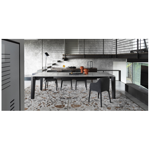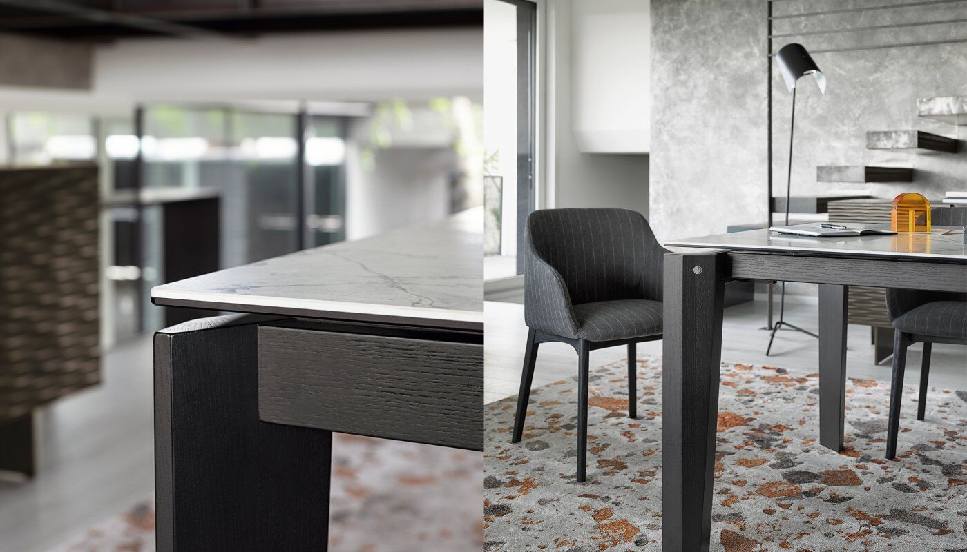 Stół rozkładany ALPHA jest doskonale dopasowany do idei inteligentnych, eleganckich i wszechstronnych produktów, które zaspokajają wszystkie normalne „zmienne” tętniącego życiem domu i czynią codzienne życie prostszym i przyjemniejszym. Jego konstrukcja jest wszechstronna dzięki połączeniu drewnianych nóg i możliwości wyboru między wieloma ceramicznymi blatami. Co więcej, lekko zwężane, wielopłaszczyznowe nogi zewnętrzne zapewniają maksymalny komfort gościom siedzącym przy stole. Nadstawki są montowane na ramie z prowadzonym ruchem otwierania.