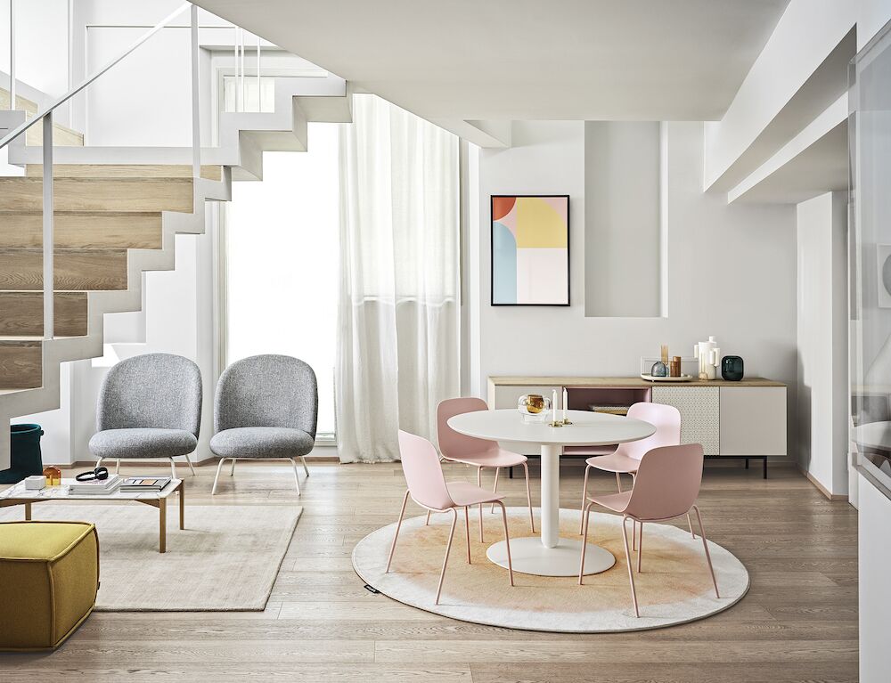 Balance to stały okrągły stół o prostym, ale kultowym profilu, którego wdzięczna linia łączy trzy elementy: wypukłą podstawę, środkową kolumnę i okrągły blat. Okrągły blat spoczywa na powlekanym metalowym cokole kolumny. Pomimo niewielkiej powierzchni styku między kolumną nośną a wybrzuszoną podstawą, stół jest wyjątkowo stabilny dzięki mocno obciążonej metalowej podstawie. Smukły, elegancki i prosty Balance spełnia wszelkie praktyczne i estetyczne potrzeby i może być dostosowany do różnych kontekstów, w tym do wnętrz domowych i przestrzeni publicznych lub komercyjnych.