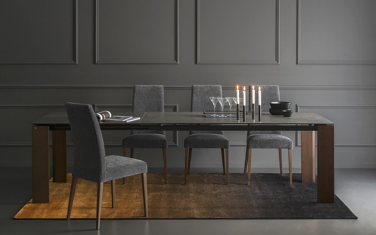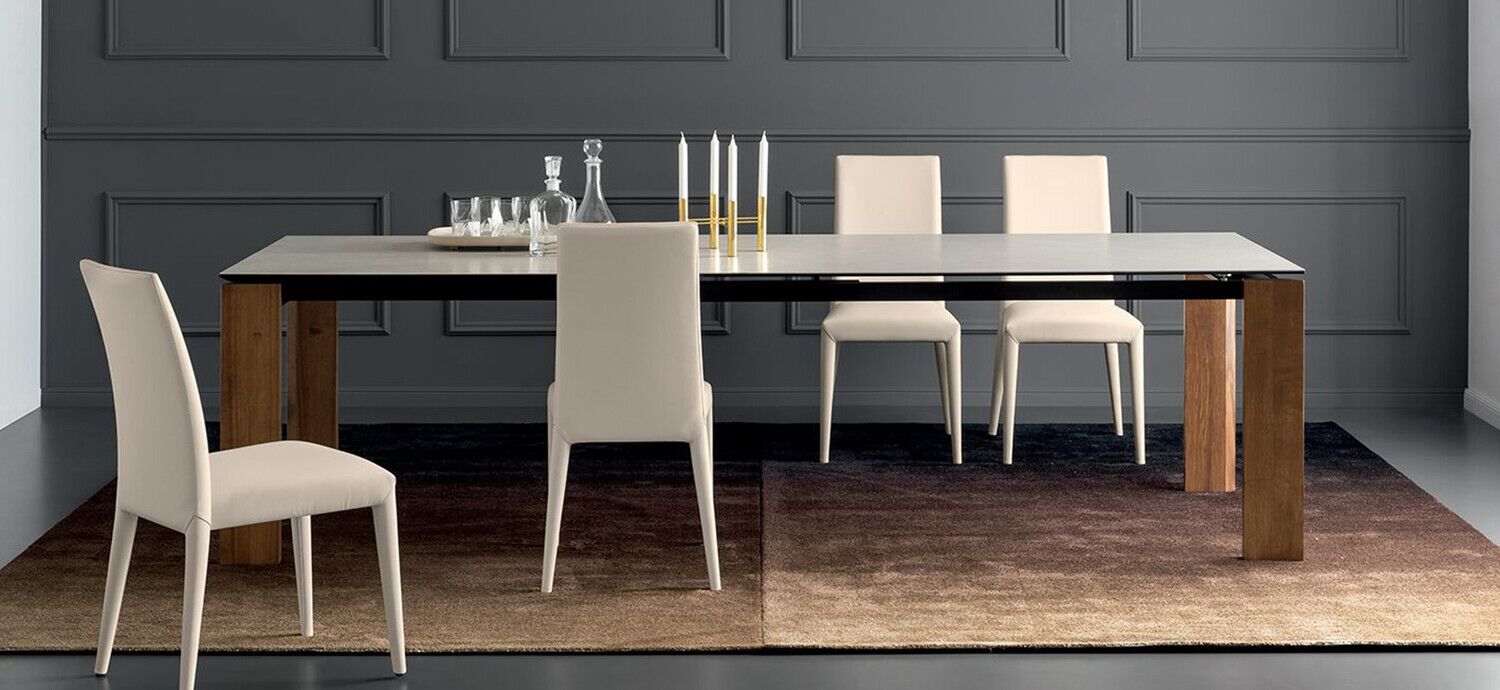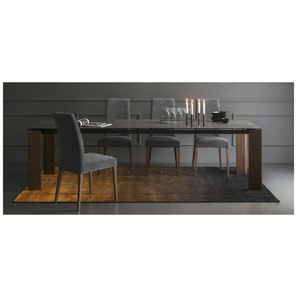 Proste linie i duża wszechstronność dla stołu, który pasuje do każdej sytuacji. Boulevard wyróżnia się wyjątkowo dużymi wymiarami i oferuje wyjątkową stabilność, a także łatwość wysuwania pomimo dużego bocznego skrzydła przedłużającego o długości metra. Ogromną zaletą jest to, że nogi są zawsze na rogach, niezależnie od tego, czy stół jest otwarty, czy zamknięty, dzięki czemu wszyscy goście mogą wygodnie usiąść. Ceramiczny blat i drewniane nogi nadają mu wyrafinowany i elegancki wygląd.