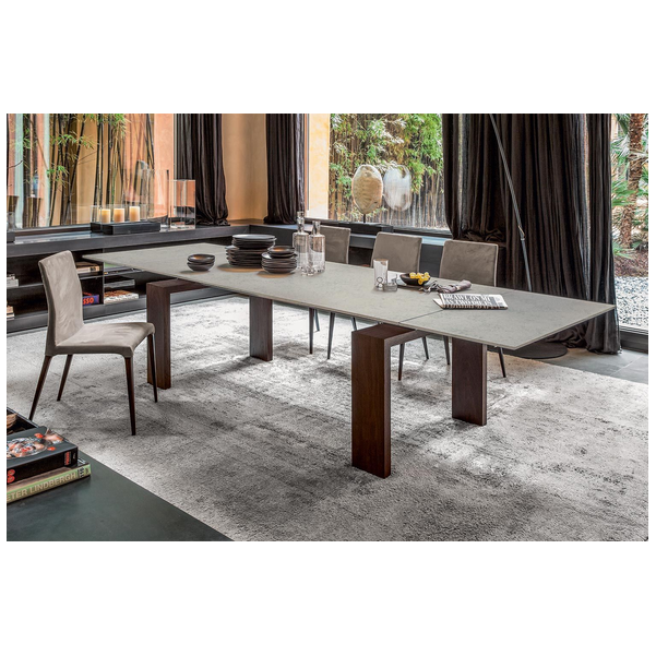 Stół Brooklyn marki Tonin Casa z pewnością stanie się przyjaznym miejscem w Twoim domu. Nowoczesny i minimalistyczny produkt charakteryzuje się prostym, liniowym wzornictwem i bogactwem dostosowań, które mają pasować do każdej palety dekorów i przestrzeni, z którą pracujesz. Stół Brooklyn jest rozkładany za pomocą łatwych w manewrowaniu przedłużek, wygodnie umieszczonych po obu stronach stołu. Stół dostępny jest w trzech rozmiarach, a podstawa stołu jest dostępna w różnych wykończeniach matowych i drewnianych. Dostępne są różne wykończenia blatu, w tym opcje szklane, porcelanowe i ceramiczne. Blat Laminam® Ceramic to połączenie 3mm ceramiki połączonej z 8mm szkłem. Blaty ceramiczne są wykonane przy użyciu zaawansowanych technologii, które skutkują zmniejszoną grubością, podwyższoną odpornością na naprężenia mechaniczne, produkty chemiczne, zarysowania, głębokie przetarcia i zginanie. Jest łatwy w utrzymaniu czystości, odporny na zimno, ogień, pleśń i promienie UV.