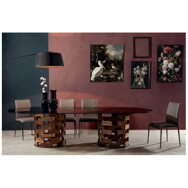 Colosseo marki Tonin Casa jest inspirowany klasyczną architekturą i ponadczasową sylwetką. Dzięki ponadstandardowemu profilowi jest idealnym wyborem dla dużych rodzin. Wyprodukowany we Włoszech stół to potwierdzenie nienagannego smaku i oko do oszałamiających projektów. Podstawa inspirowana splotem koszykowym sprawia, że ten stół jest centralnym punktem nowoczesnej salonu, a wyjątkowy design zestawia się z eleganckim i przestronnym blatem. Colosseo ma solidną drewnianą podstawę w różnych pięknych wykończeniach i blat dostępny w szerokiej gamie wykończeń ze szkła, ceramiki i marmuru. Wybierz między prostokątnym i podłużnym kształtem, które są dostępne w różnych rozmiarach.