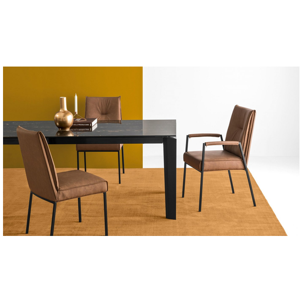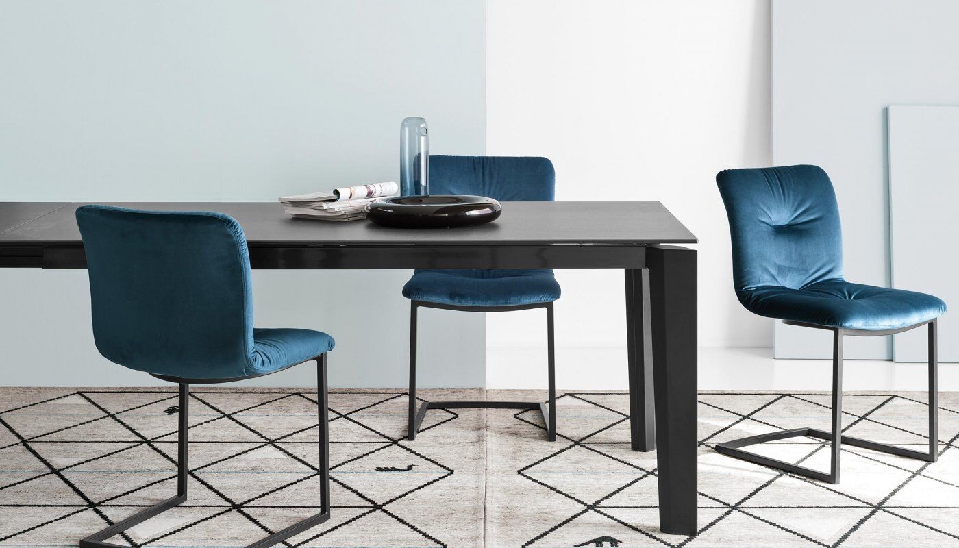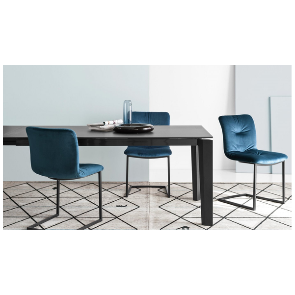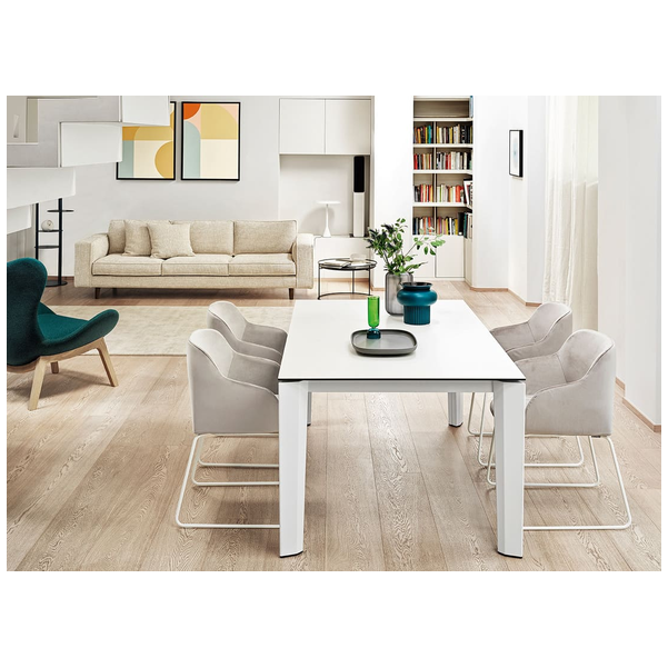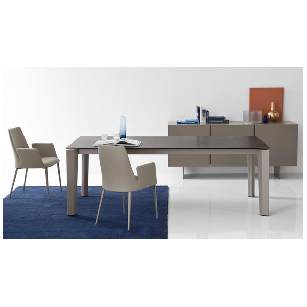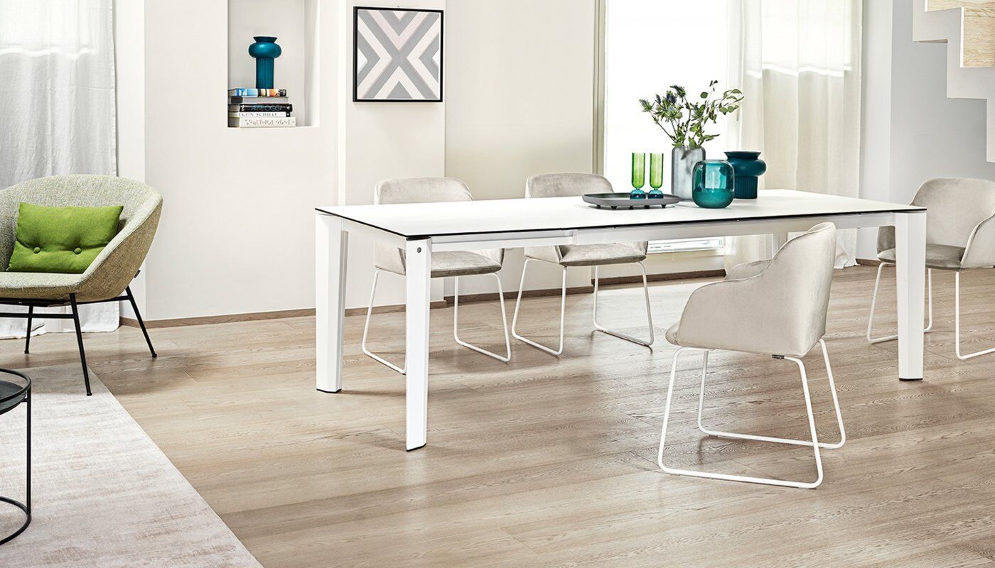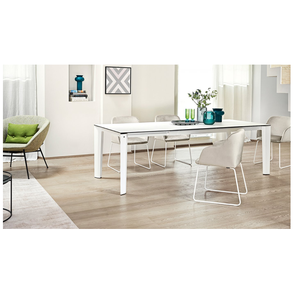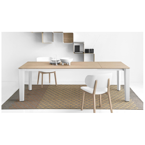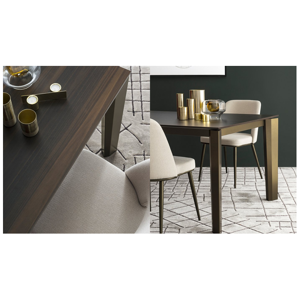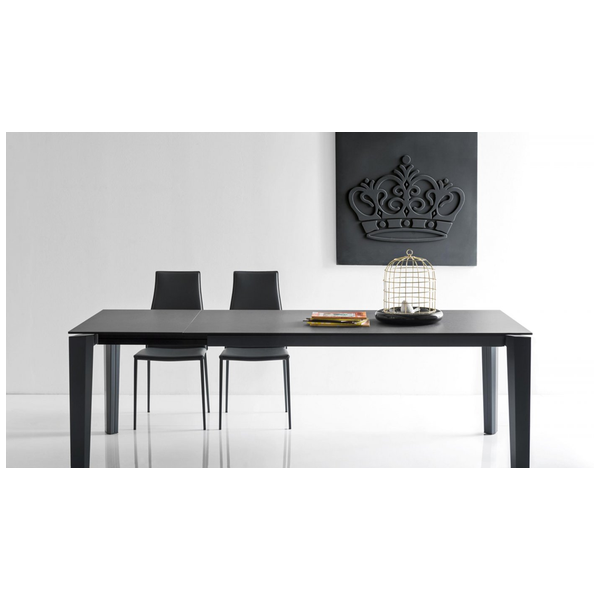 Stół rozkładany Delta z metalowymi nogami. Stół Delta ma ukośne nogi i blat, który rozciąga się wzdłuż prowadnic. Nogi zawsze pozostają w rogach stołu, zapewniając maksymalny komfort wszystkim gościom.