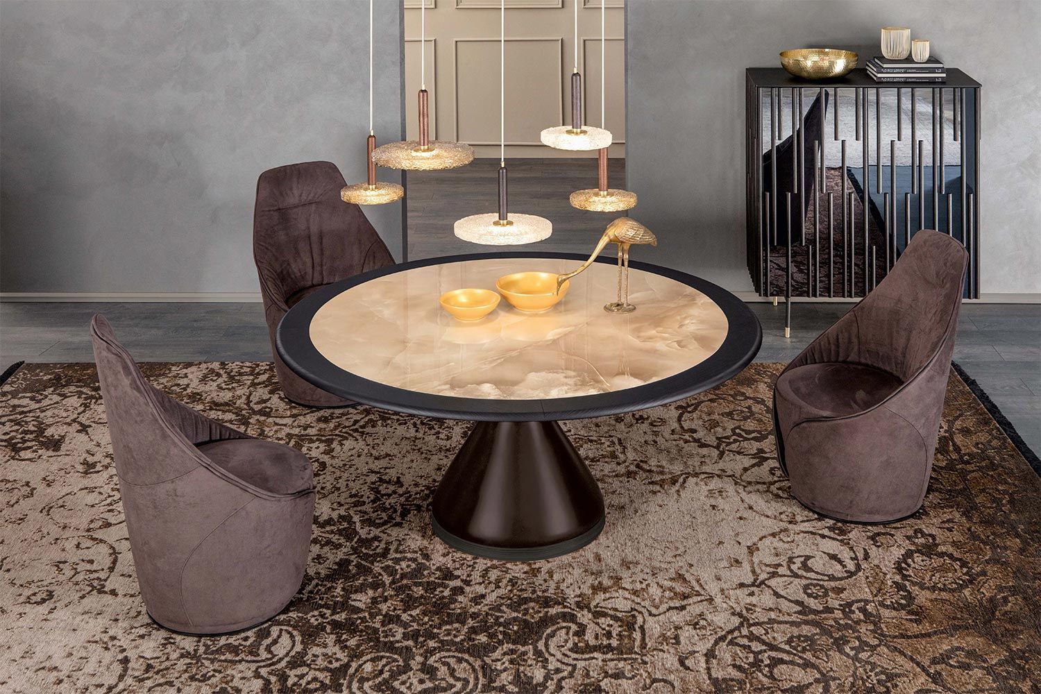 Stół Dolly marki Tonin Casa ma przyjazną sylwetkę, która robi wspaniałe wrażenie w nowoczesneych pomieszczeniach. Rzeźbiona podstawa jest urzekająca i przypomina klepsydrę. Dzięki kontrastowi między blatem, a podstawą, stół ma efektowne zestawienie i jest po prostu spektakularny. Połącz z różnymi pięknymi krzesłami do jadalni Tonin Casa, aby uzyskać spójny wykończony wygląd. Wyprodukowany we Włoszech z niepowtarzalną jakością, stół Dolly jest dostępny w trzech rozmiarach, aby zaspokoić indywidualne potrzeby. Blat ma różne opcje ceramiczne i porcelanowe z szeregiem drewnianych wykończeń. Podstawa występuje w różnych kolorach.