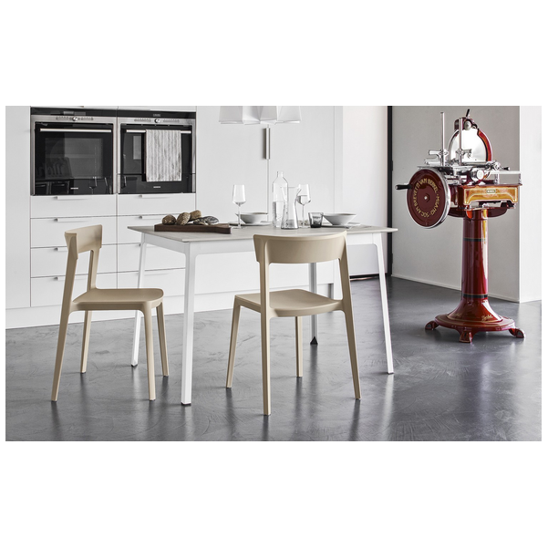 Lekki, o minimalistycznym wyglądzie, Dot idealnie wpasuje się w każdą kuchnię, dopasowując się do otoczenia i stając się idealnym miejscem na romantyczne kolacje przy świecach, a także na tętniące życiem rodzinne spotkania. Skrzydło dostawne, w tym samym wykończeniu co blat i przechowywane pod nim, jest ustawiane ręcznie, a powlekane metalowe nogi zawsze pozostają w rogach, aby zapewnić maksymalny komfort wszystkim gościom. Dot to stół łączący elegancką lekkość z precyzyjnym dążeniem do stylu.