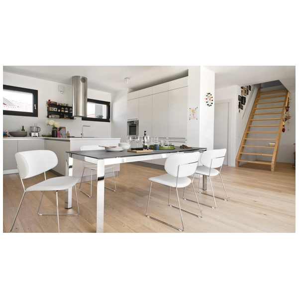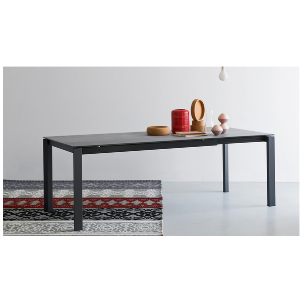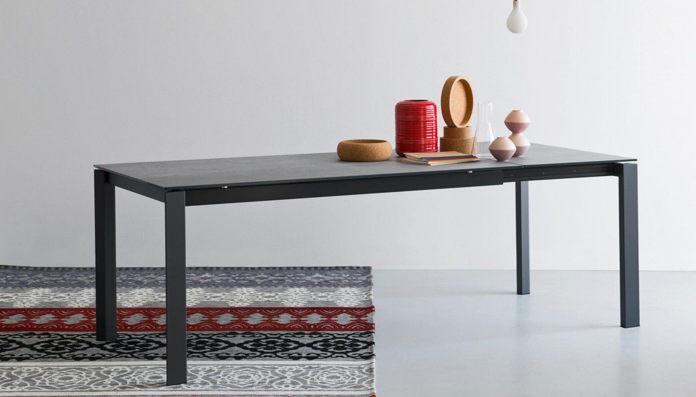 Stół rozkładany Duca: metalowa rama i blat dostępne w kilku materiałach i wykończeniach. Stół zawiera system przedłużający z prowadnicami zamontowanymi na ramie: wyciągając ramę, dwie nogi przesuwają się w jedną stronę, umożliwiając podniesienie skrzydła przedłużającego, zamontowanego na metalowych prowadnicach, do uniesienia, obrócenia na miejsce i wyrównania z blatem prosty ruch. Nogi zawsze pozostają w rogach stołu, zapewniając maksymalny komfort wszystkim gościom. Odkryj wszystkie dostępne kombinacje: blaty laminowane, pokryte melaminą, szkło hartowane, ceramiczne lub FENIX NTM® są dostępne w różnych rozmiarach i można je dopasować do metalowych wykończeń ramy: wiele kombinacji, aby dopasować się do każdego ustawienia!