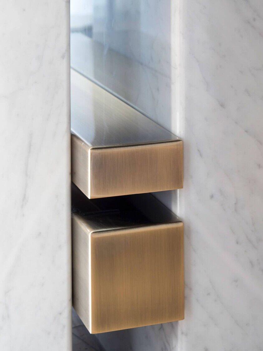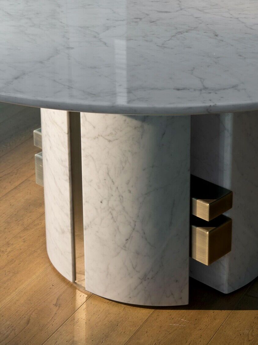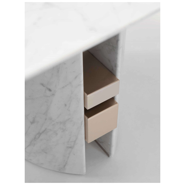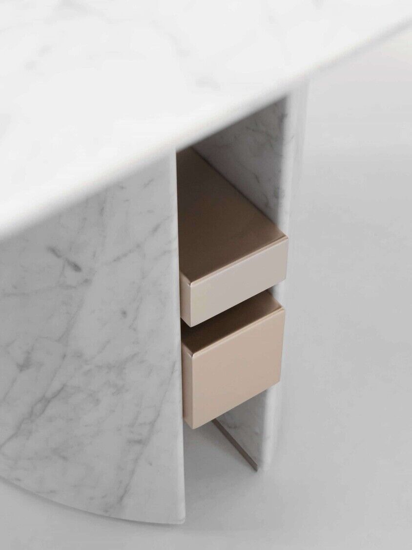 Opracowana z czystego bloku marmuru, rodzina akcesoriów Ercole ujawnia wielką wszechstronność dzięki swojemu kształtowi.