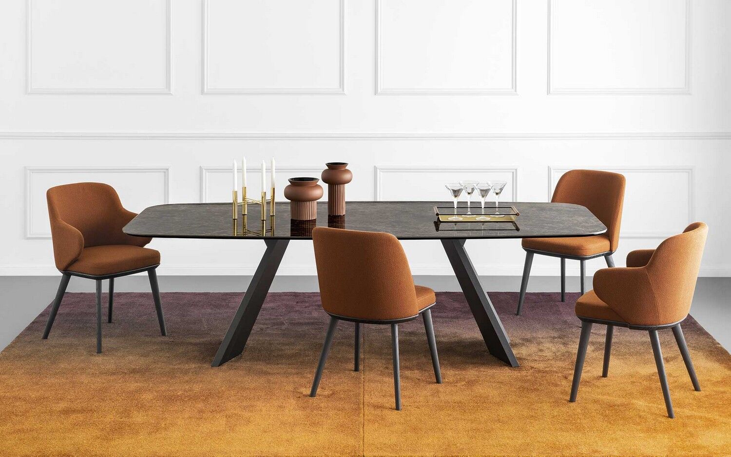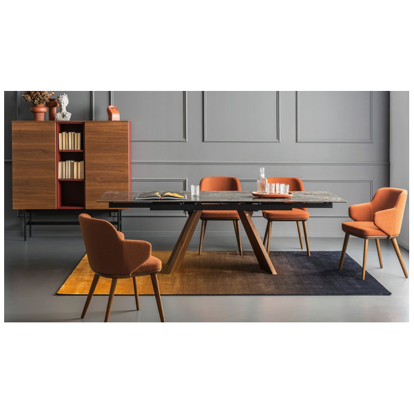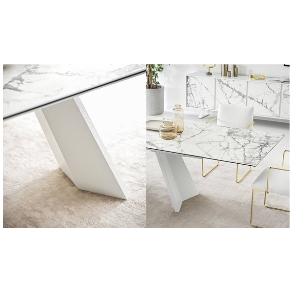 Icaro to rozkładany stół z fornirowaną drewnianą podstawą i ceramicznym blatem. Jest solidny, wytrzymały, wszechstronny i uderzająco elegancki dzięki prostokątnemu blatowi z dwoma bocznymi skrzydłami, które można indywidualnie otwierać. Skrzydła Icaro otworzą się w Twojej jadalni i nadadzą jej naprawdę wyrafinowany akcent.