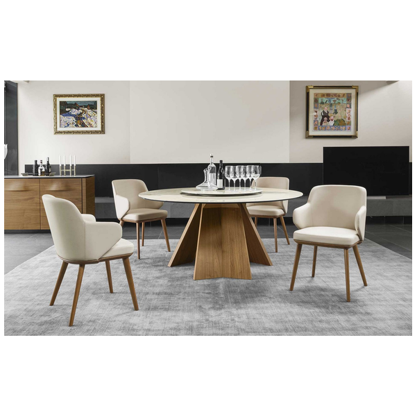Icaro to stół z ceramicznym blatem i podstawą składający się z trzech elementów z fornirowanego drewna o grubości 40 mm. Niech skrzydła Icaro podniosą Twoją jadalnię na nowe wyżyny, elegancko zakotwiczając ten nierozciągający się okrągły stół u podstawy. To bardzo elegancki i niezwykle funkcjonalny mebel. Można go nawet wyposażyć w leniwy gramofon Susan, umieszczony pośrodku, tak aby wszyscy goście mogli wygodnie obsłużyć siebie.