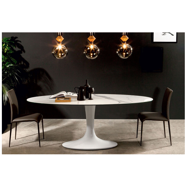 Imperial to praktyczna i stylowa opcja do współczesnych przestrzeni. Robi ogromne wrażenie dzięki dużemu owalnemu blatowi i rzeźbiarskiej podstawie, która jest pełna charakteru. Dzięki przestronnemu blatowi ten stół jest idealny dla dużych rodzin. Imperial jest wykonany tylko z najlepszych materiałów, został zaprojektowany z myślą o długowieczności, aby był podstawowym meblem na lata. Zaprojektowany przez Gino Carollo i wyprodukowany we Włoszech, aby zapewnić jakość, stół Imperial od Tonin Casa jest dostępny w trzech rozmiarach, aby zaspokoić indywidualne potrzeby. Blat jest dostępny w wielu szklanych i ceramicznych wykończeniach, a podstawa jest dostępna w różnych opcjach.